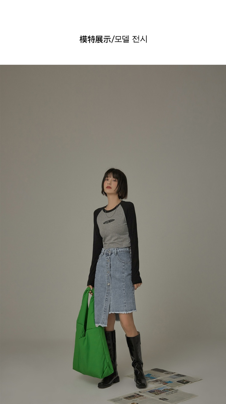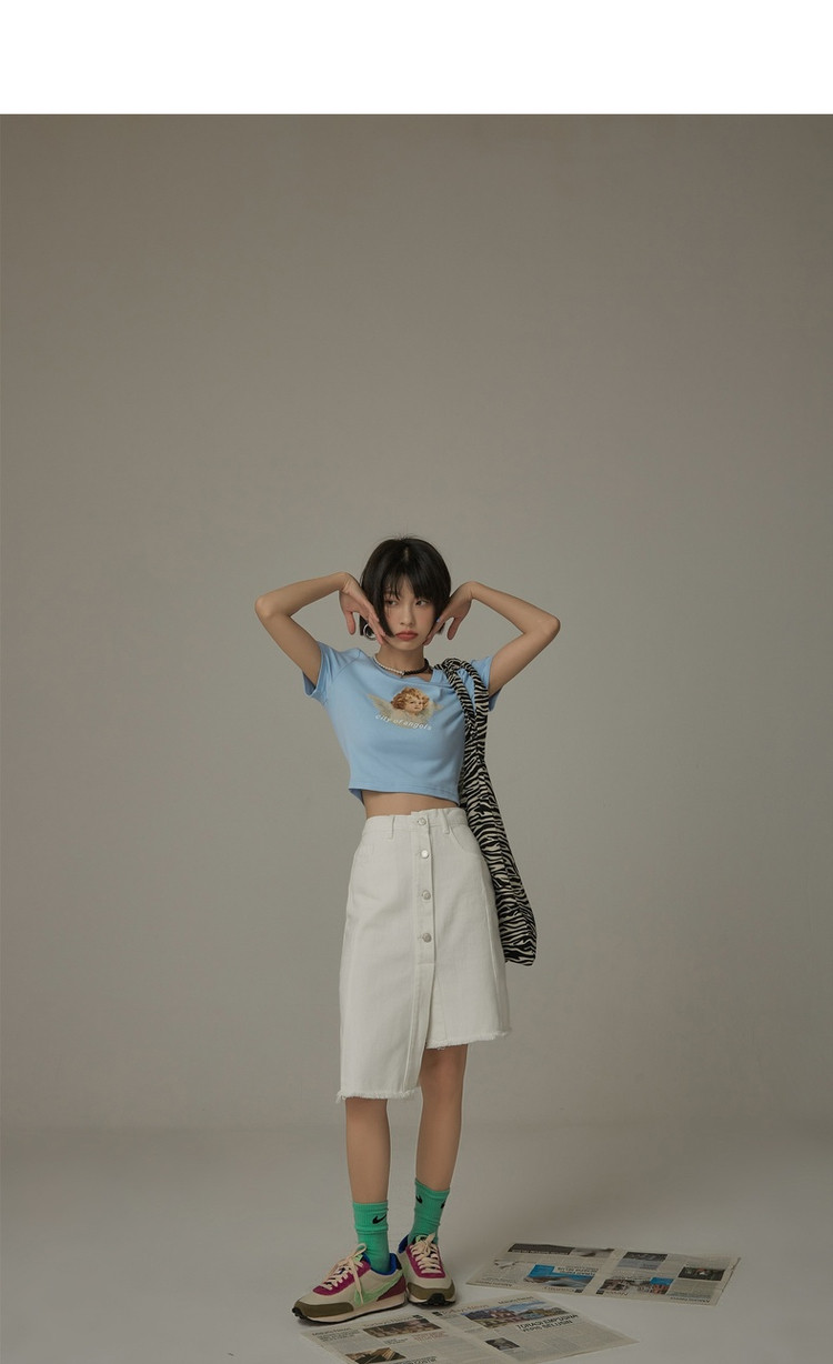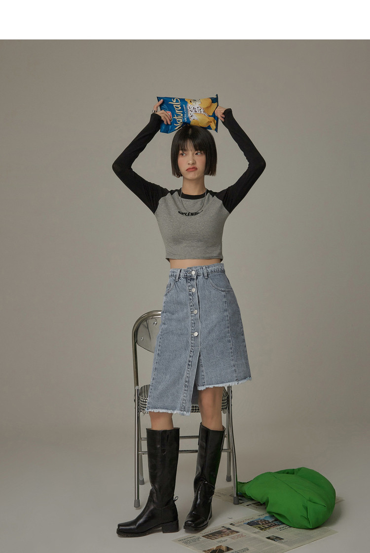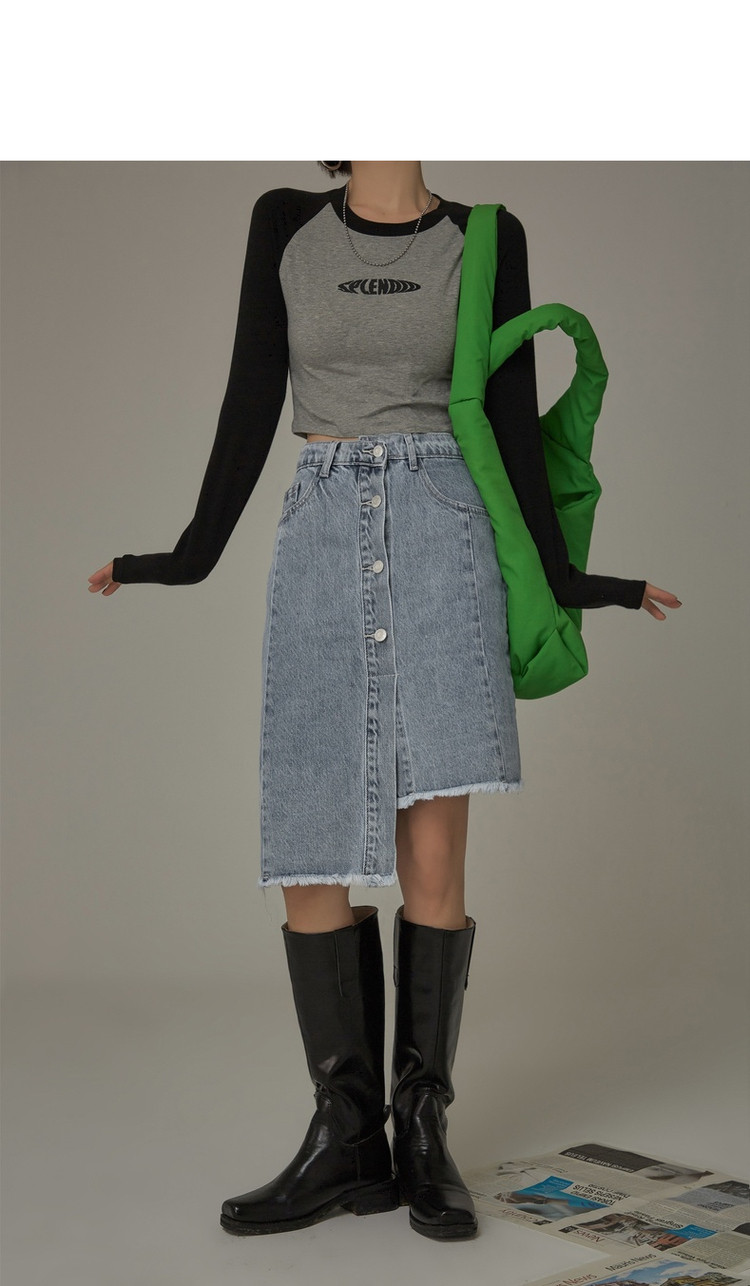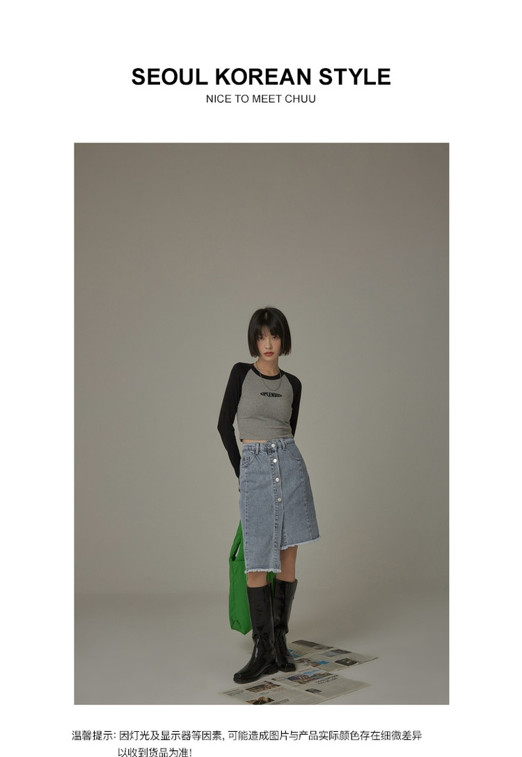 排扣不规则半身裙女春高腰牛仔裙子 629395