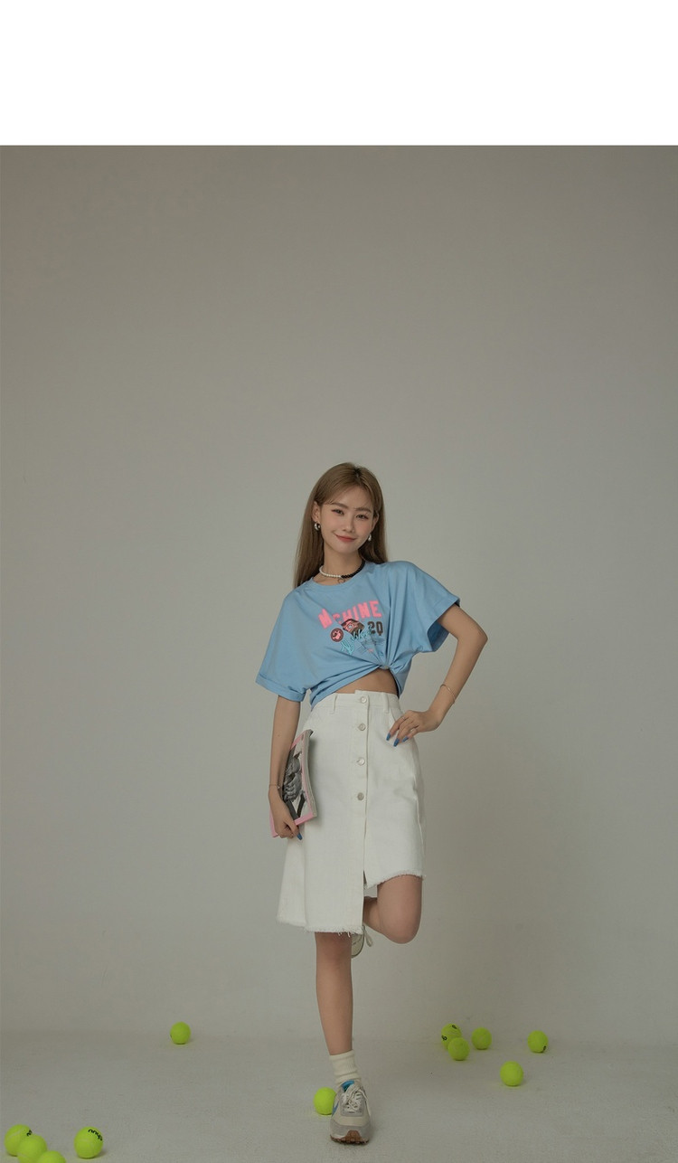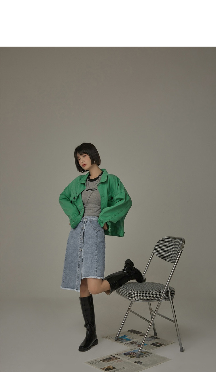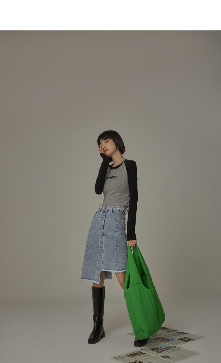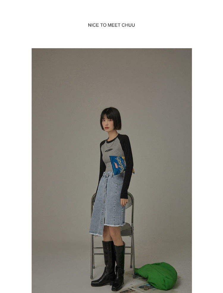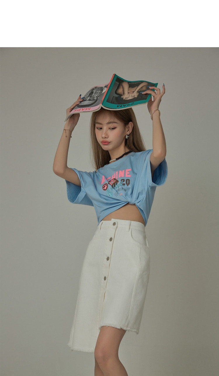 排扣不规则半身裙女春高腰牛仔裙子 629395