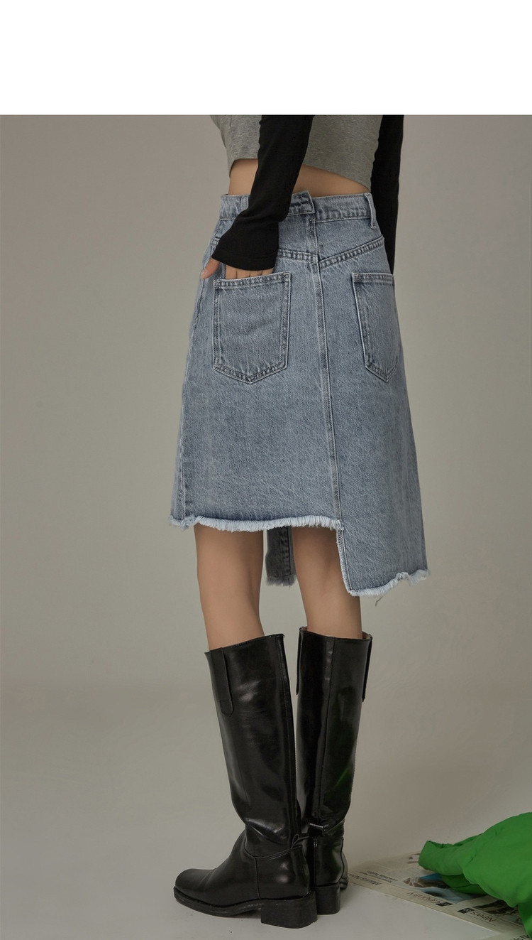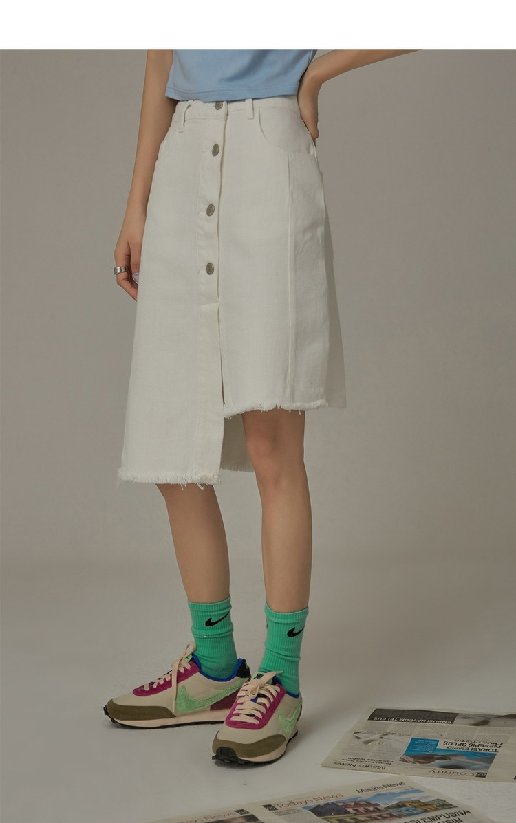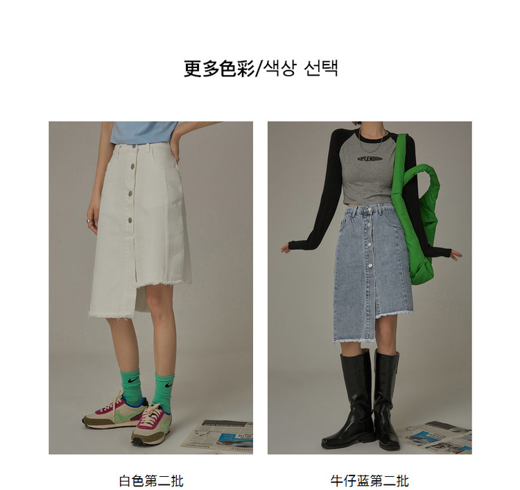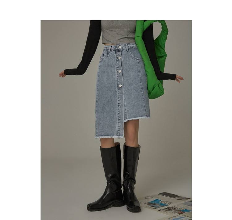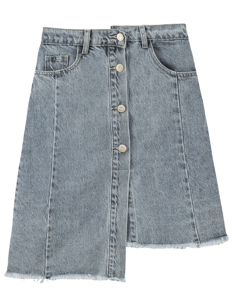 商品名称:排扣不规则半身裙女春高腰牛仔裙子 629395