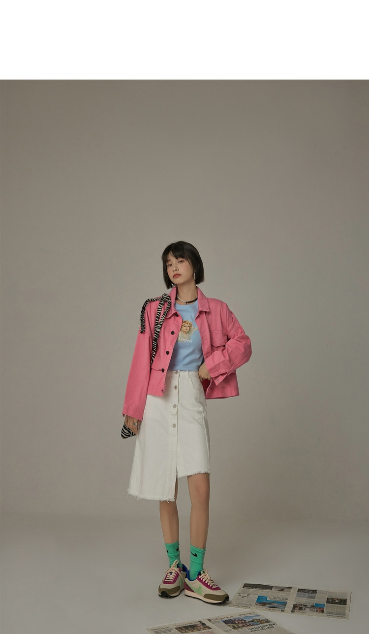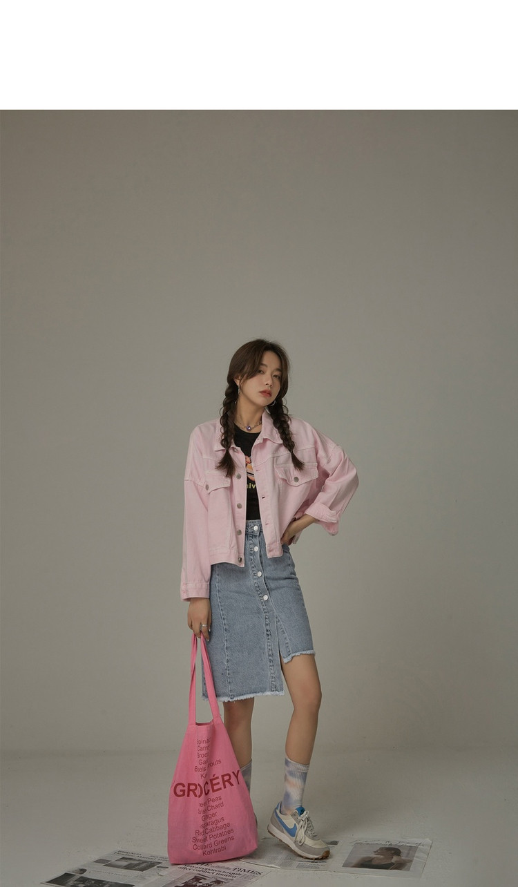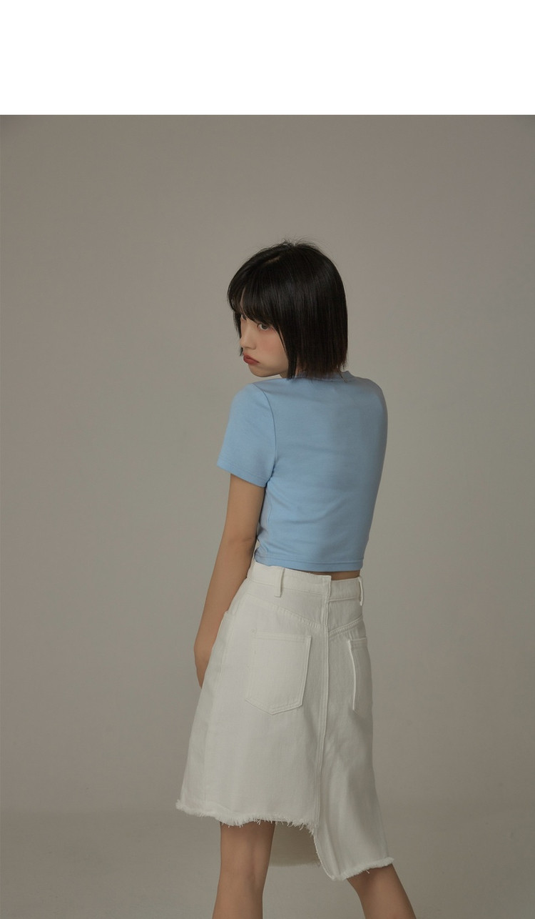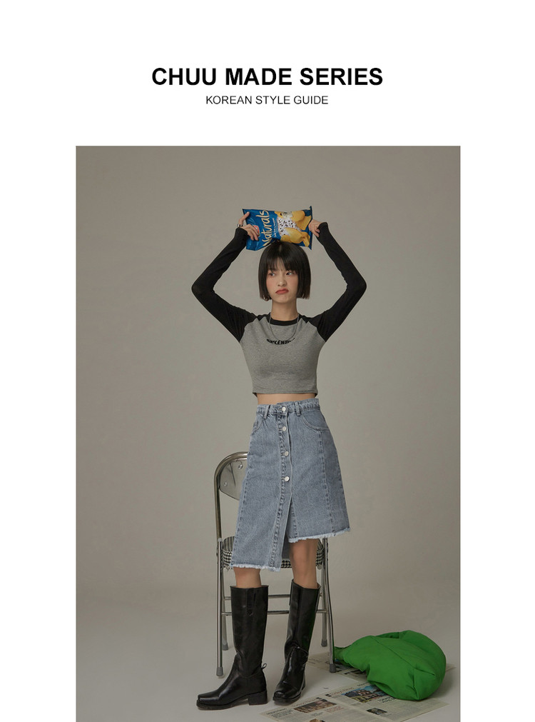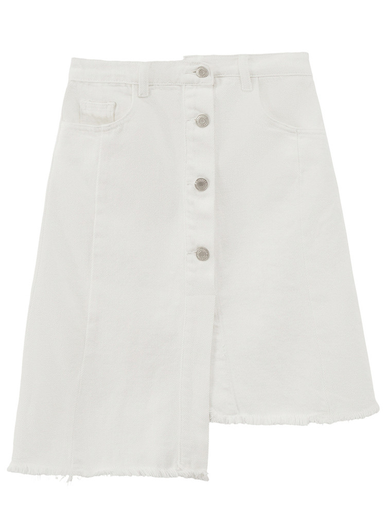商品名称:排扣不规则半身裙女春高腰牛仔裙子 629395