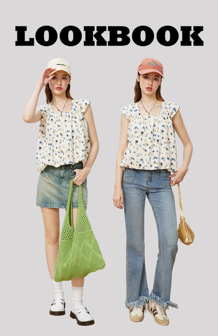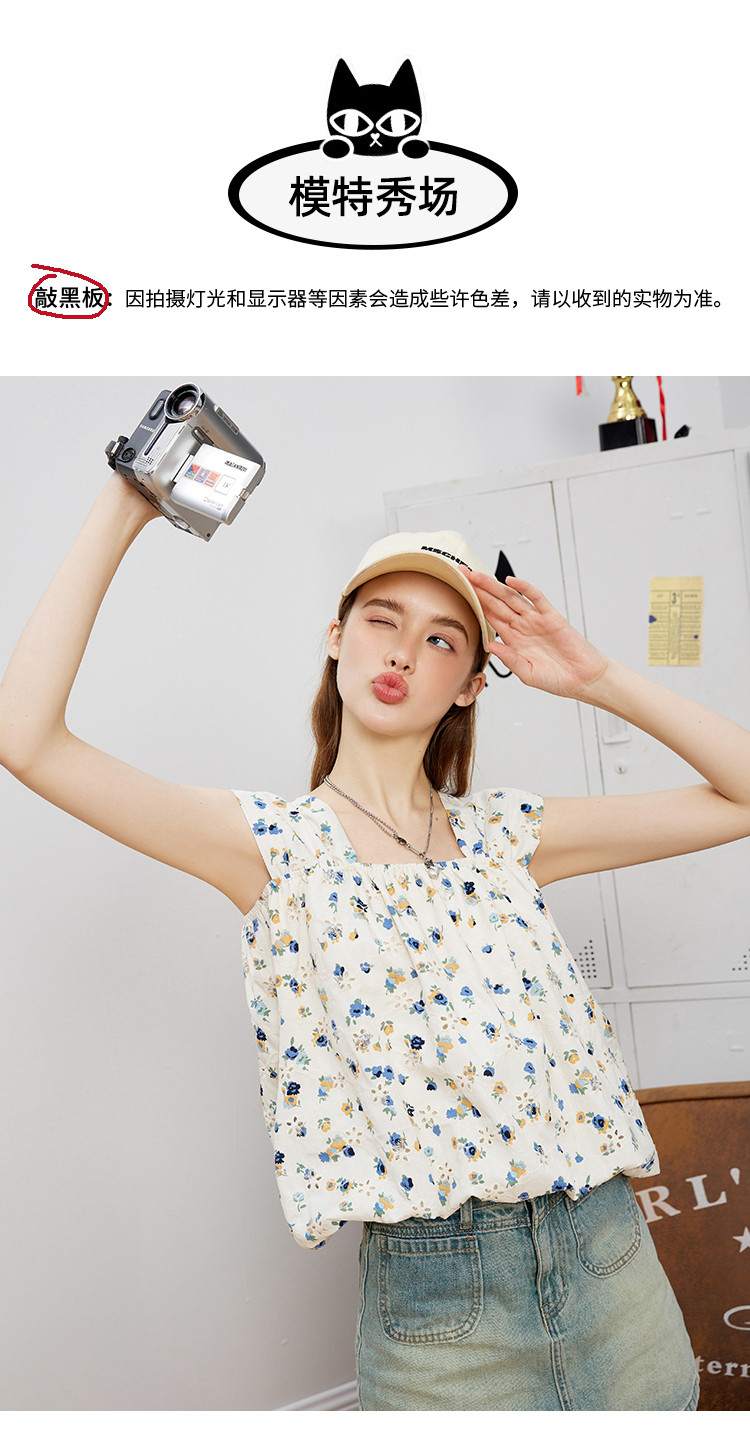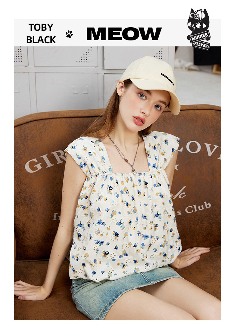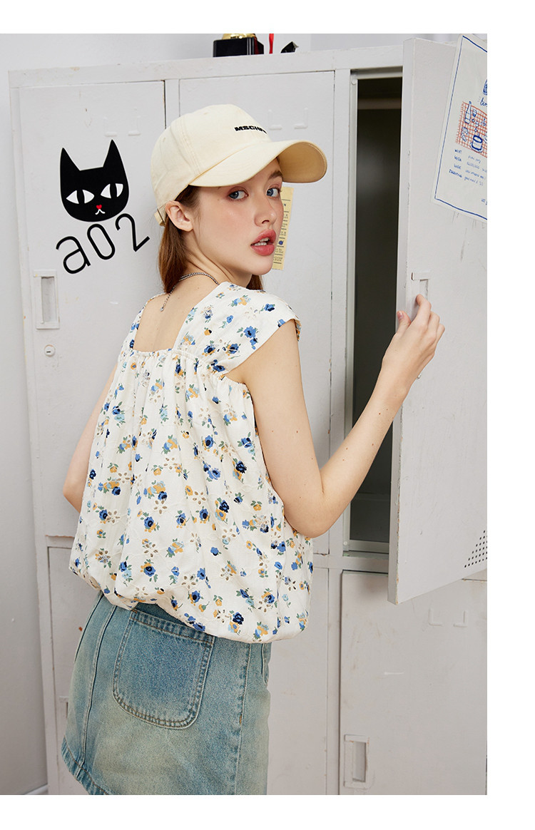 商品名称:无袖方领碎花吊带宽松显瘦女式衬衫夏季甜美短款上衣 910749