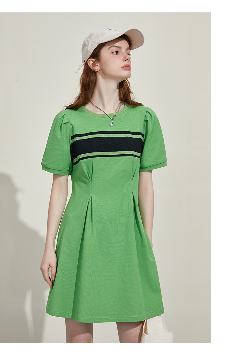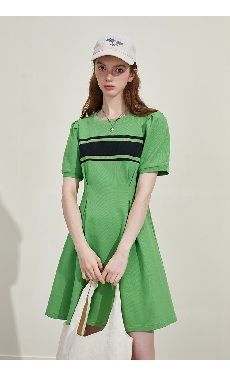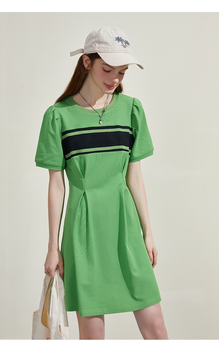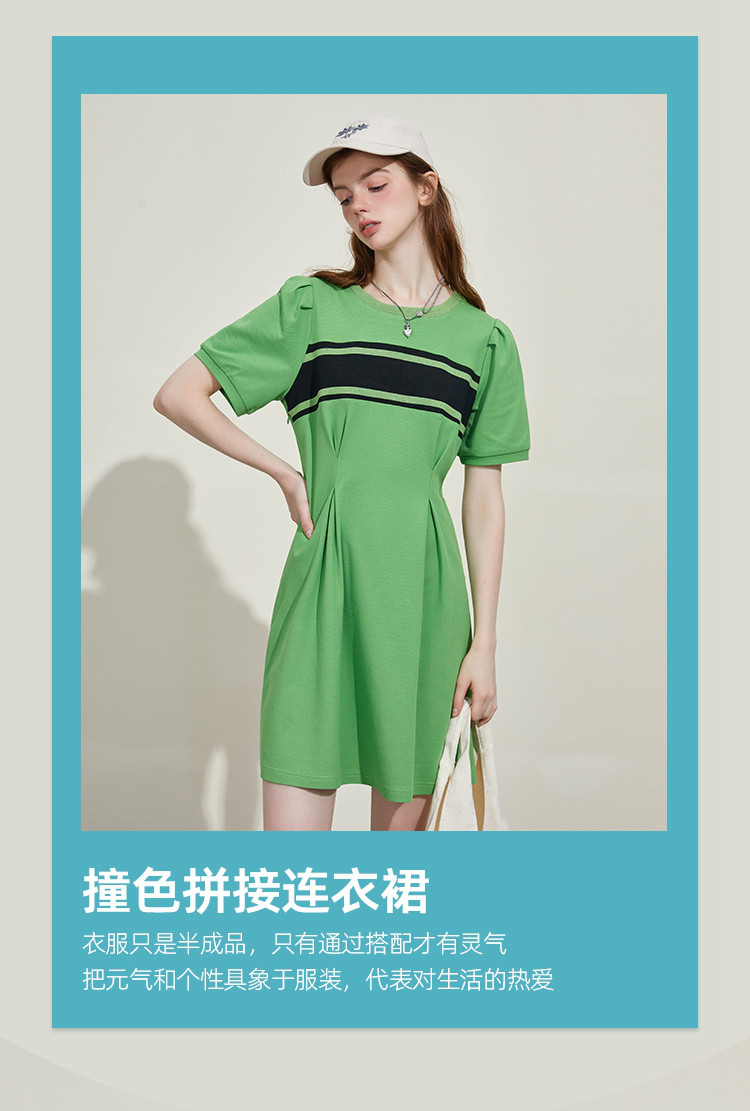 撞色螺口设计收腰修身A字裙夏季休闲百搭显瘦气质连衣裙 818461