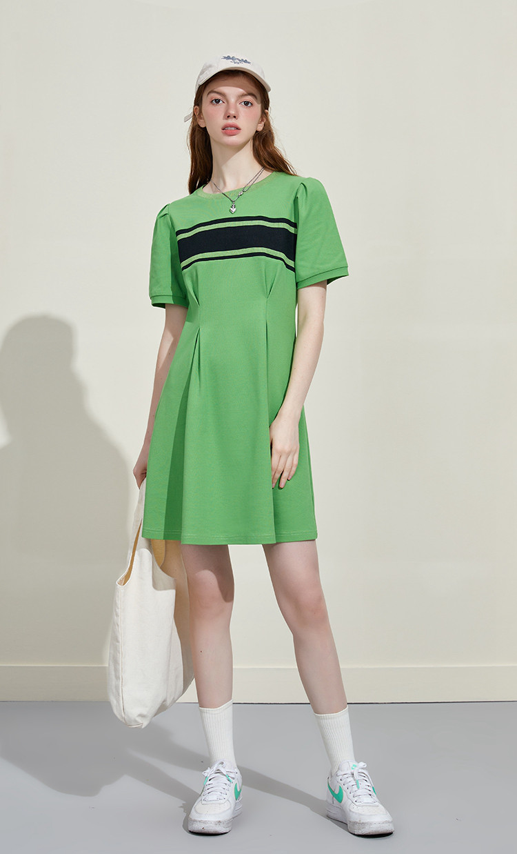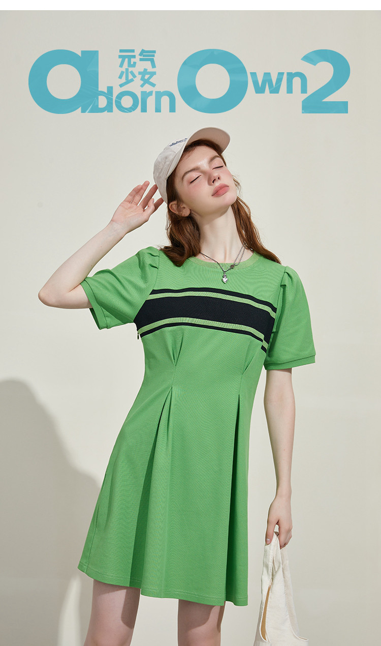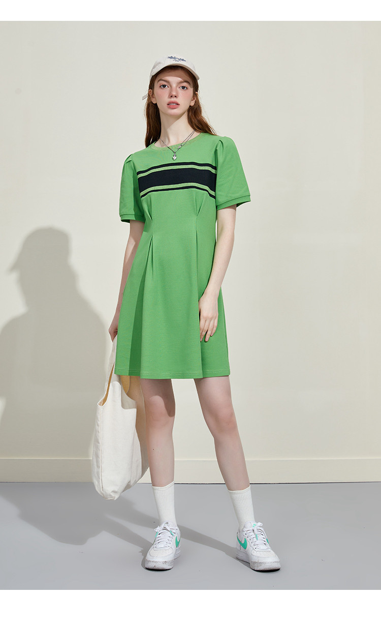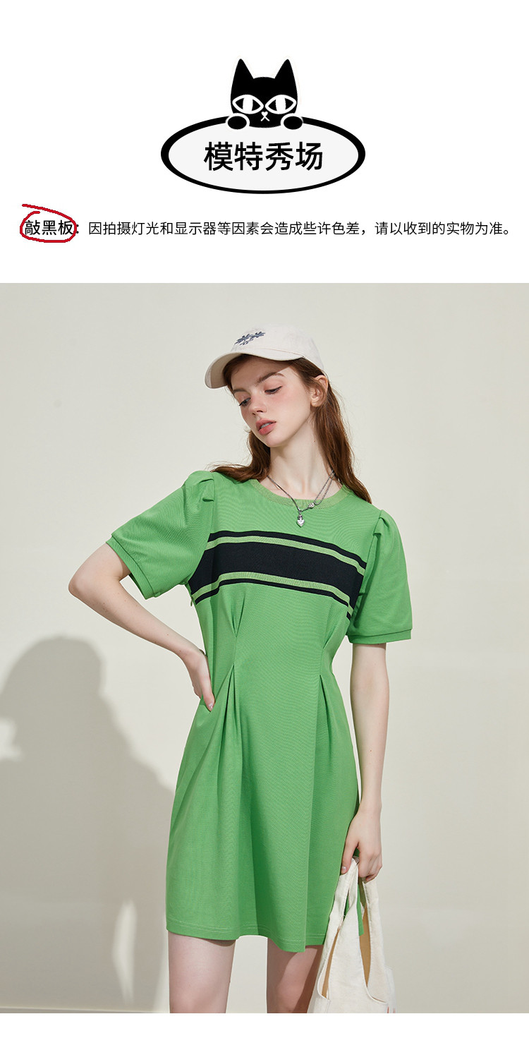 撞色螺口设计收腰修身A字裙夏季休闲百搭显瘦气质连衣裙 818461