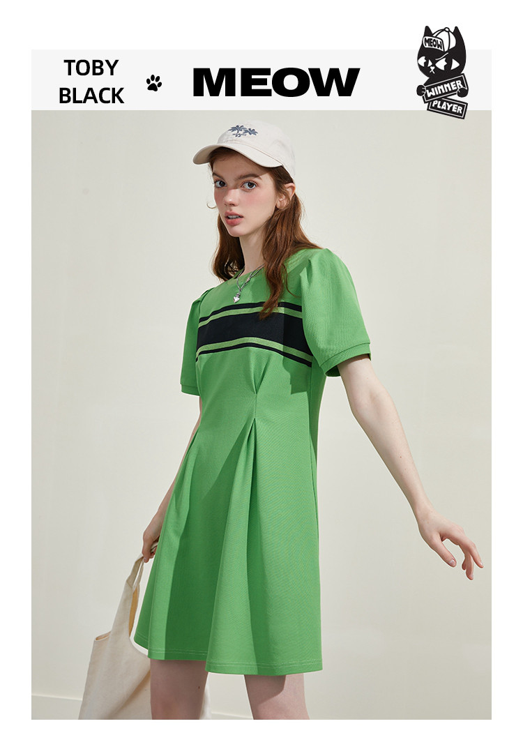 商品名称:撞色螺口设计收腰修身A字裙夏季休闲百搭显瘦气质连衣裙 818461