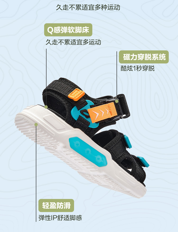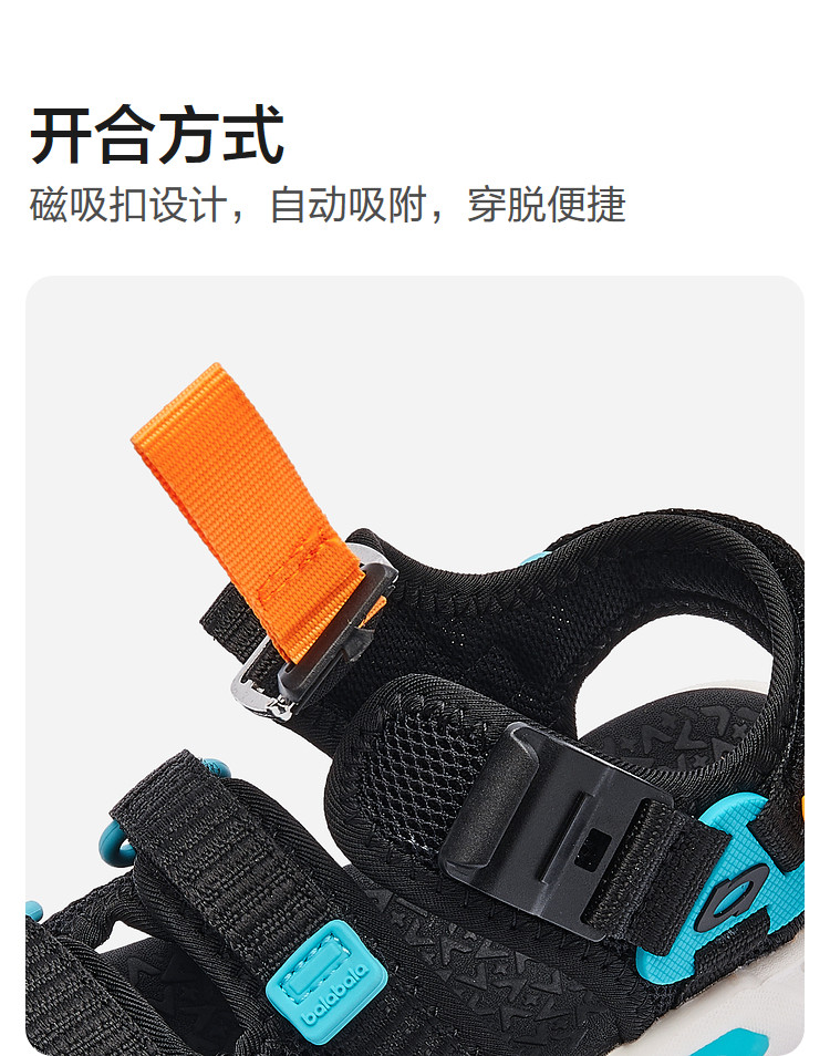 磁吸扣设计凉鞋男童沙滩鞋运动凉鞋女童夏季透气吸汗运动童鞋百搭 829125