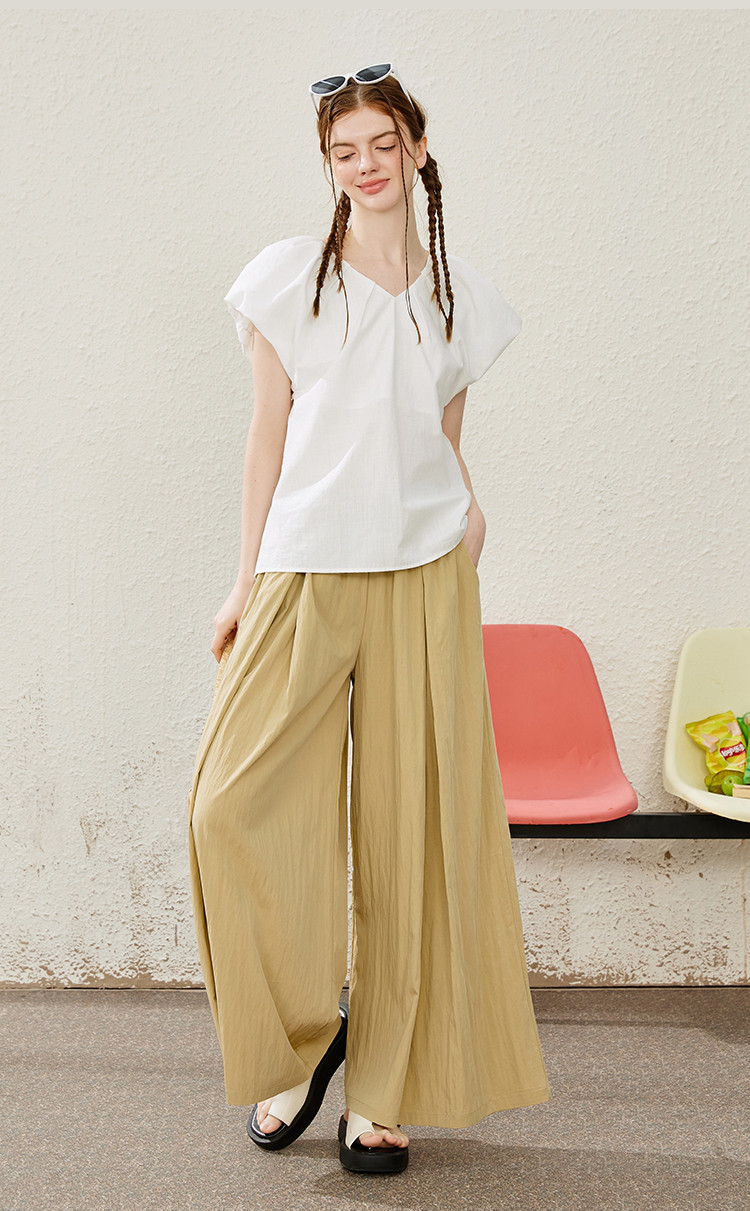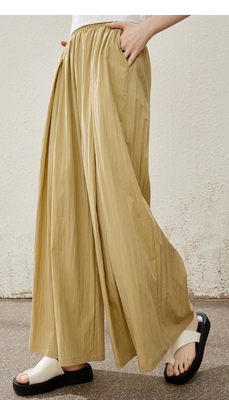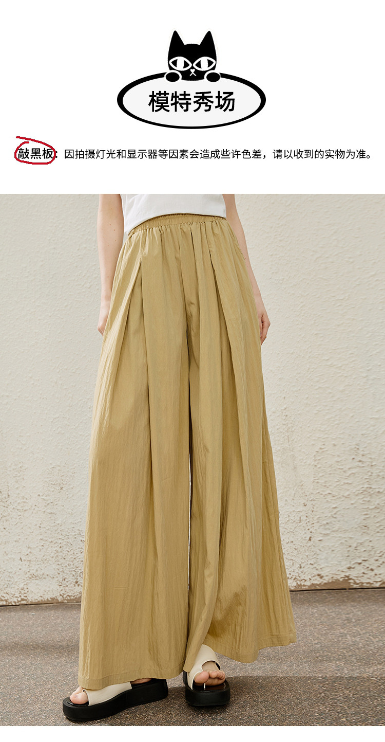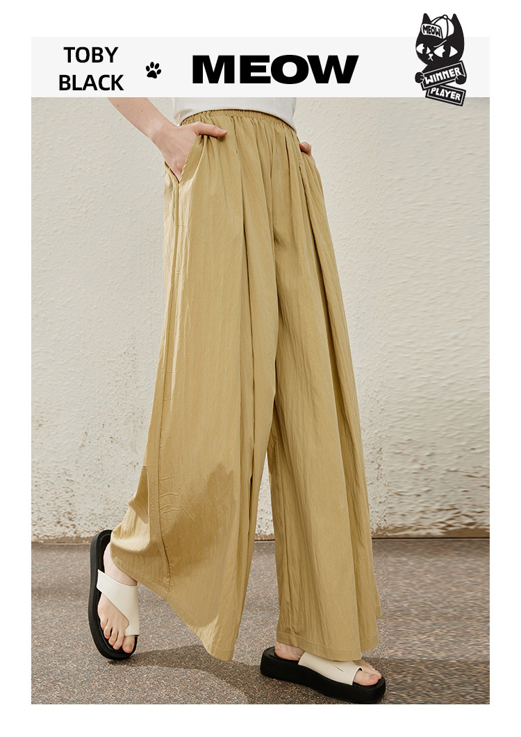 飘逸宽松薄款高腰垂感阔腿裤夏季纯色简约设计女式休闲裤 462877