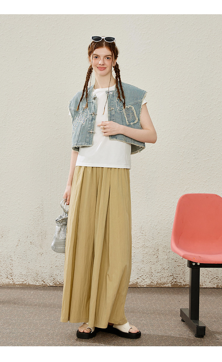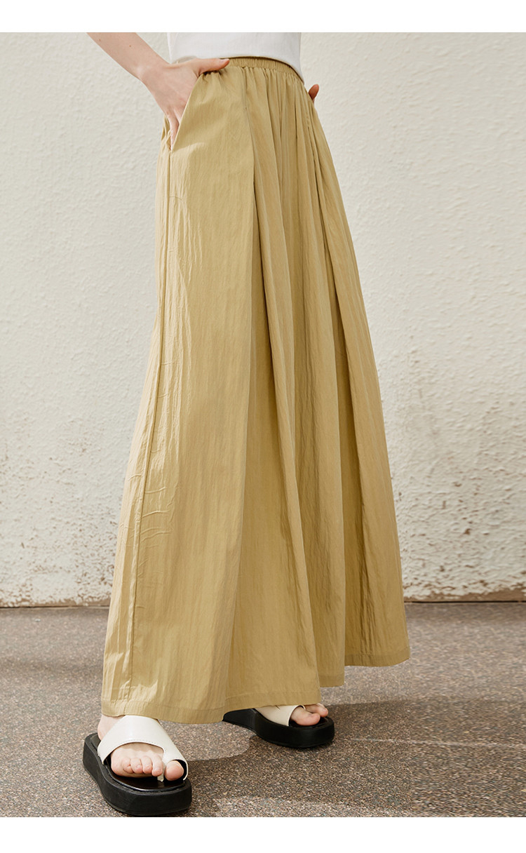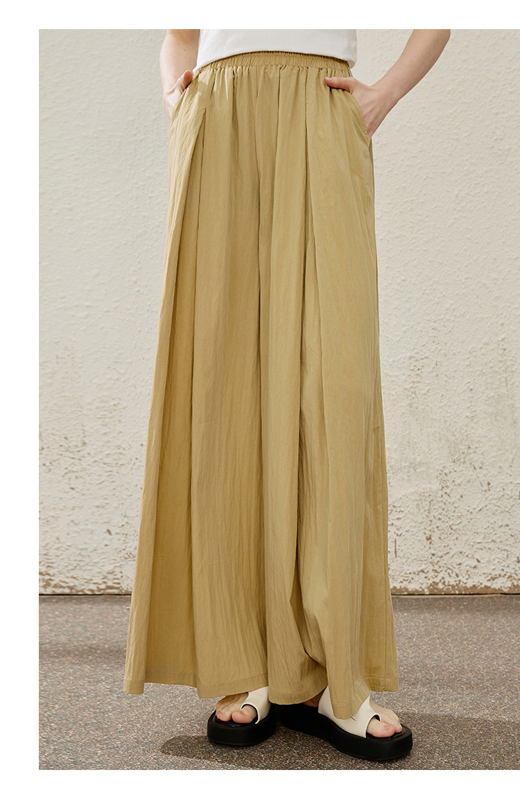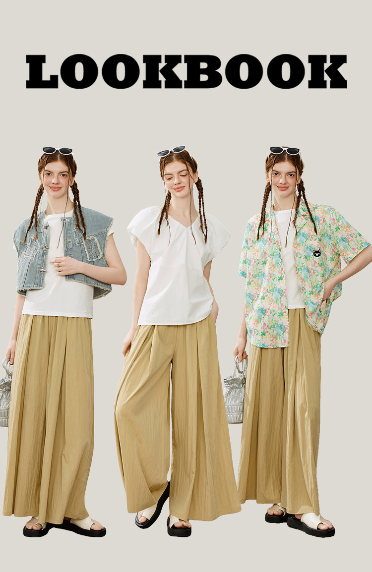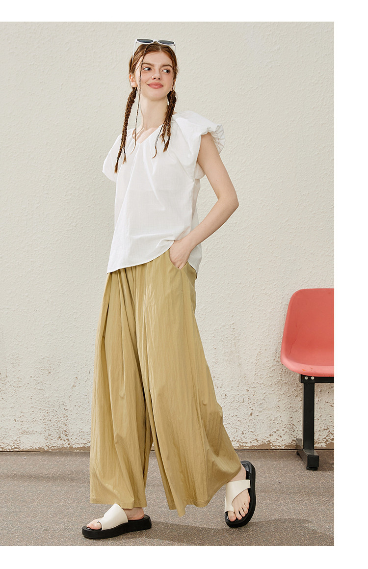 飘逸宽松薄款高腰垂感阔腿裤夏季纯色简约设计女式休闲裤 462877