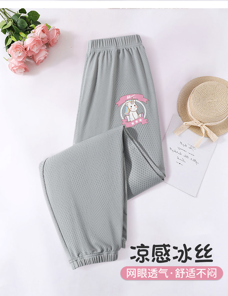商品名称:儿童裤子女大童舒适运动裤夏装女童夏季薄款束脚防蚊裤女孩独角兽 183507