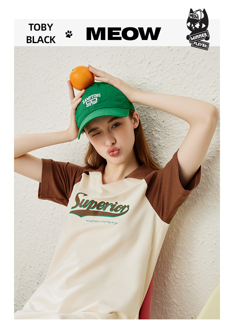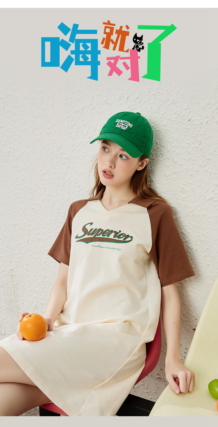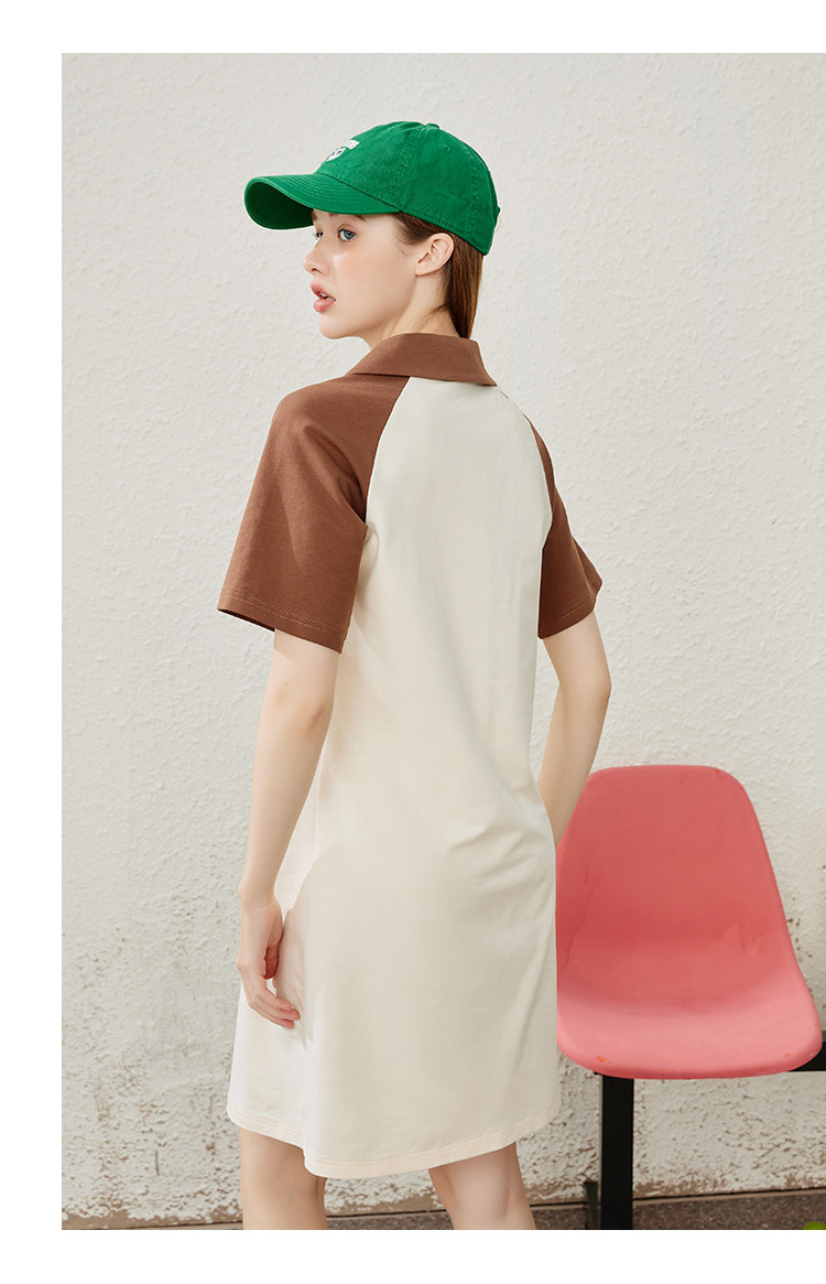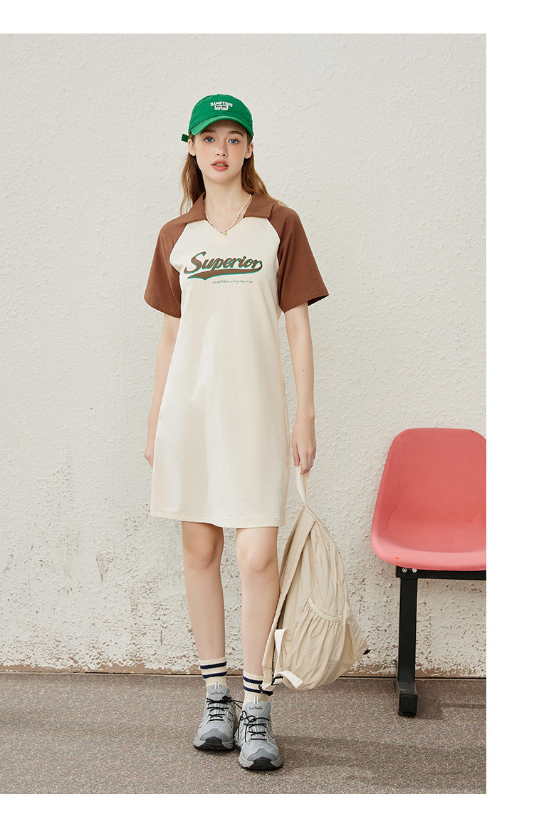 商品名称:【复古休闲】夏季翻领拼色直筒裙时尚字母印花休闲连衣裙 907101