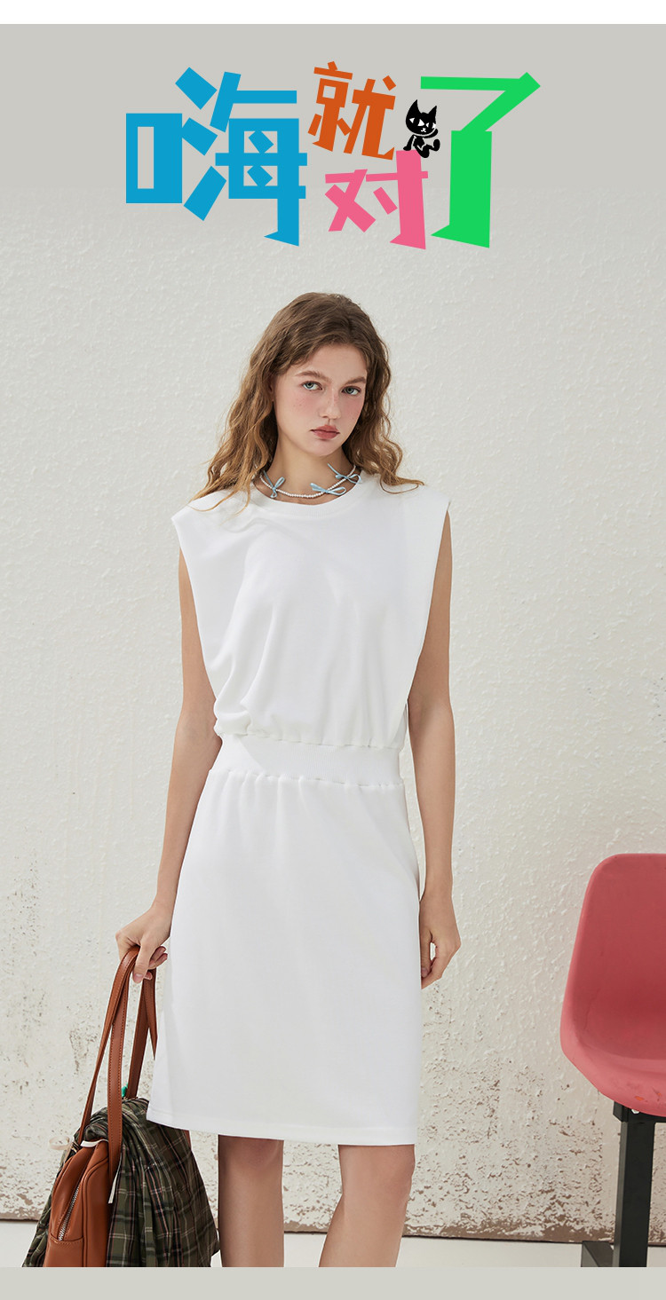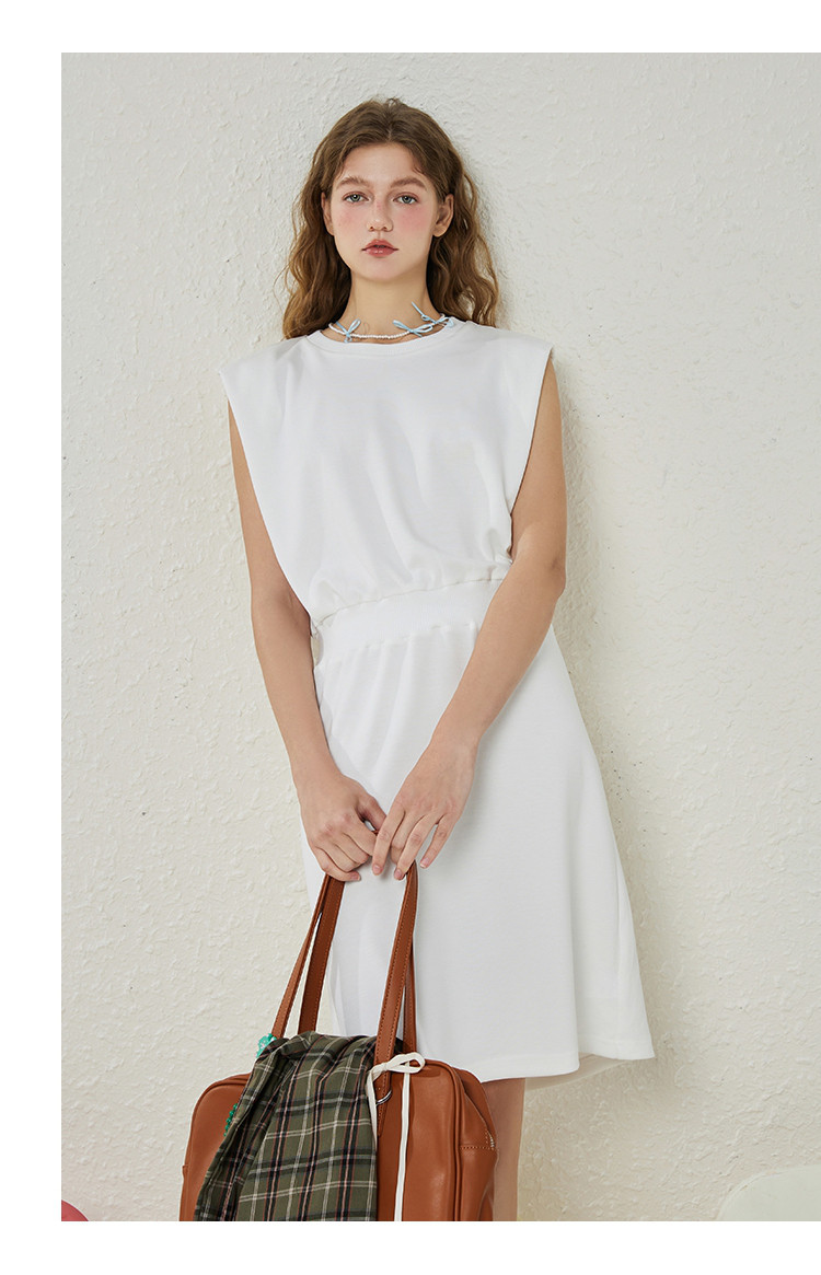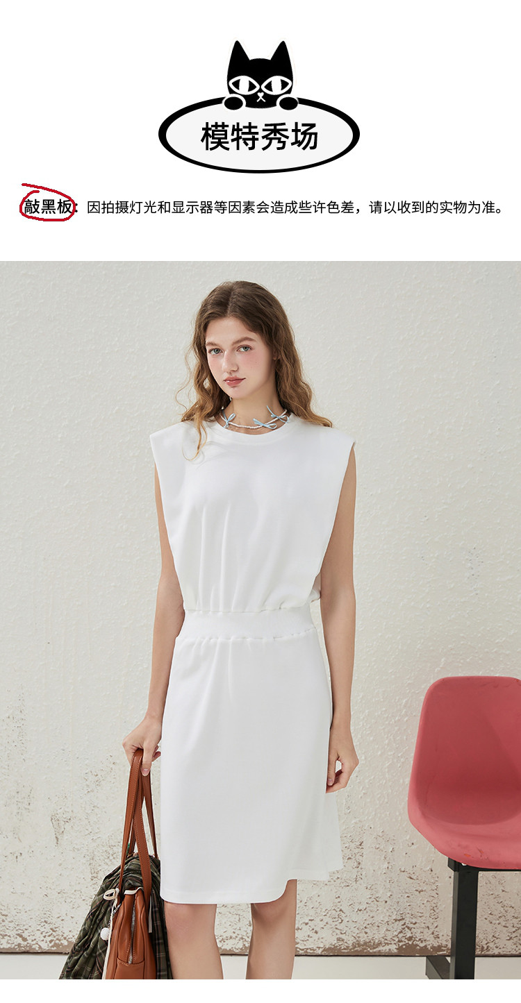商品名称:收腰显瘦御姐范纯色简约设计气质连衣裙夏季圆领A字裙 373469