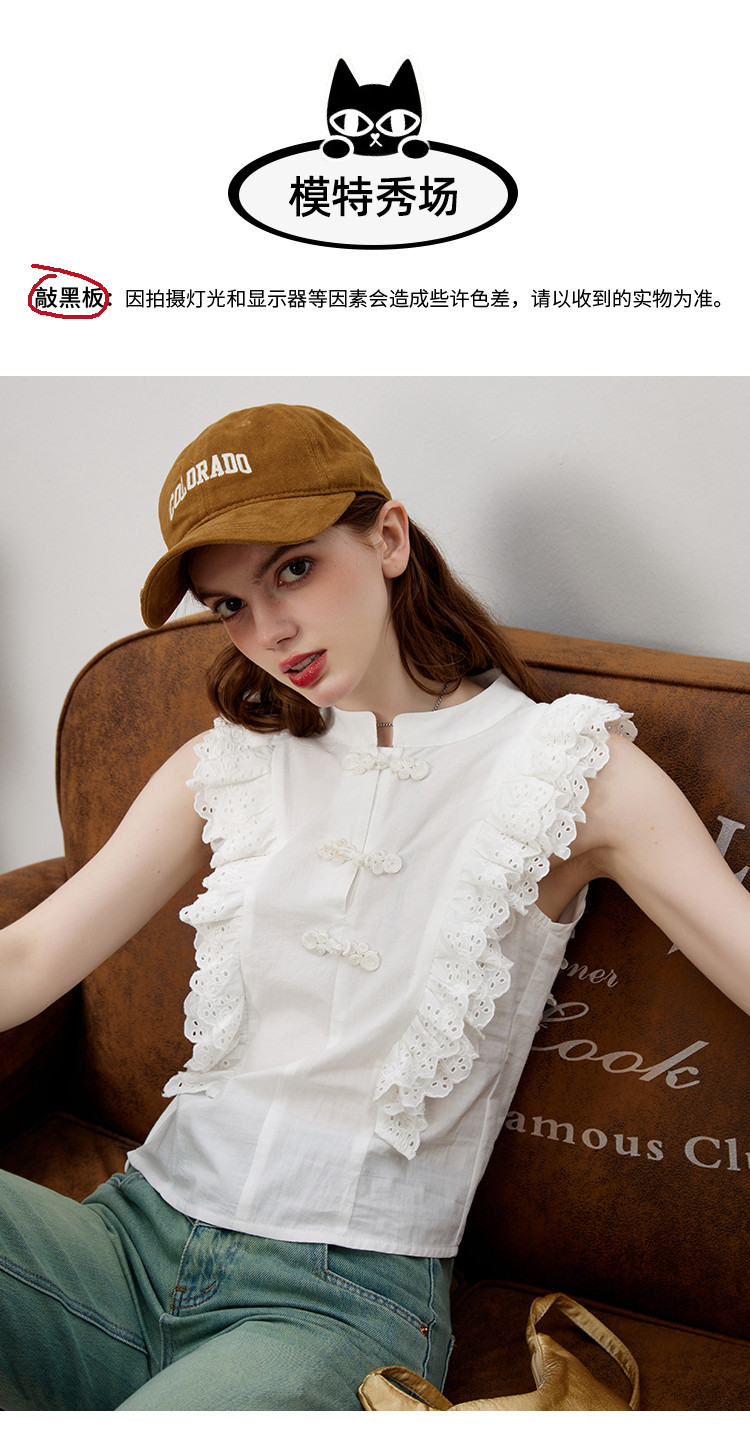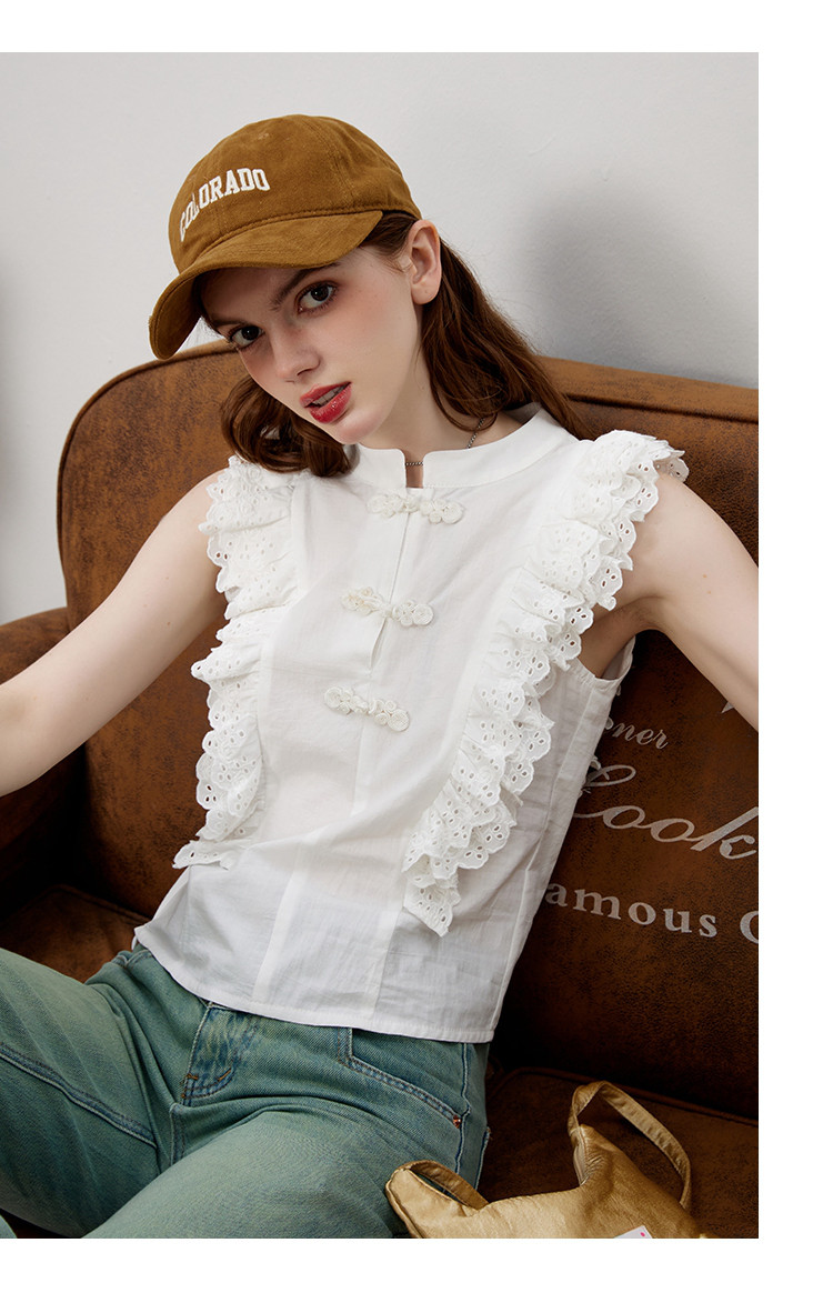 商品名称:中式浪漫国风设计感盘扣无袖女式衬衫夏季小众纯色上衣 816285