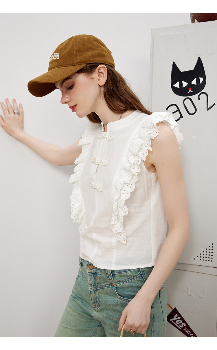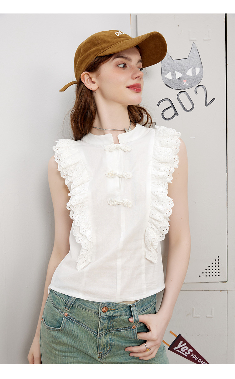 中式浪漫国风设计感盘扣无袖女式衬衫夏季小众纯色上衣 816285