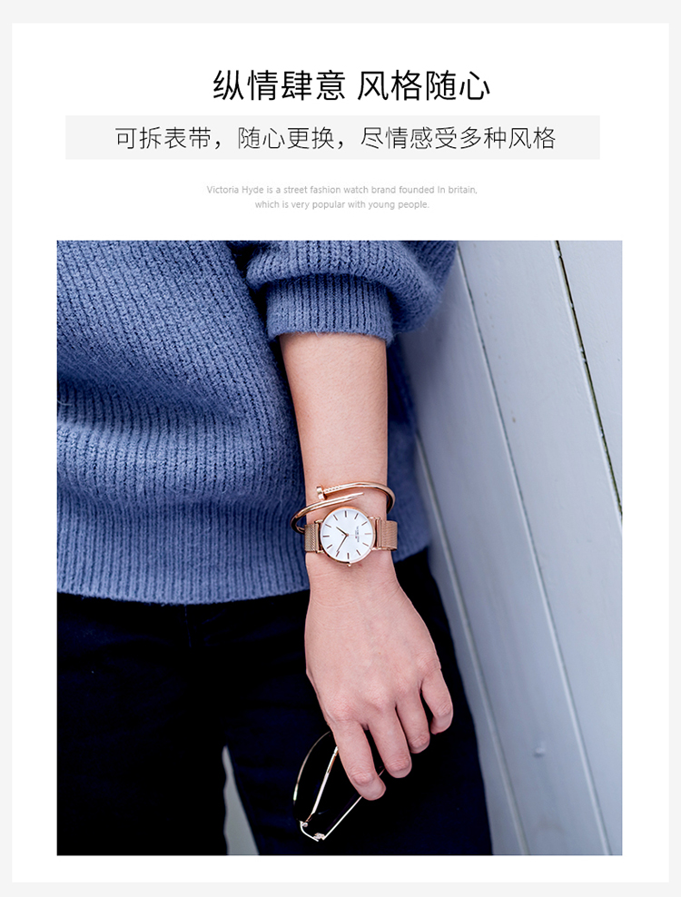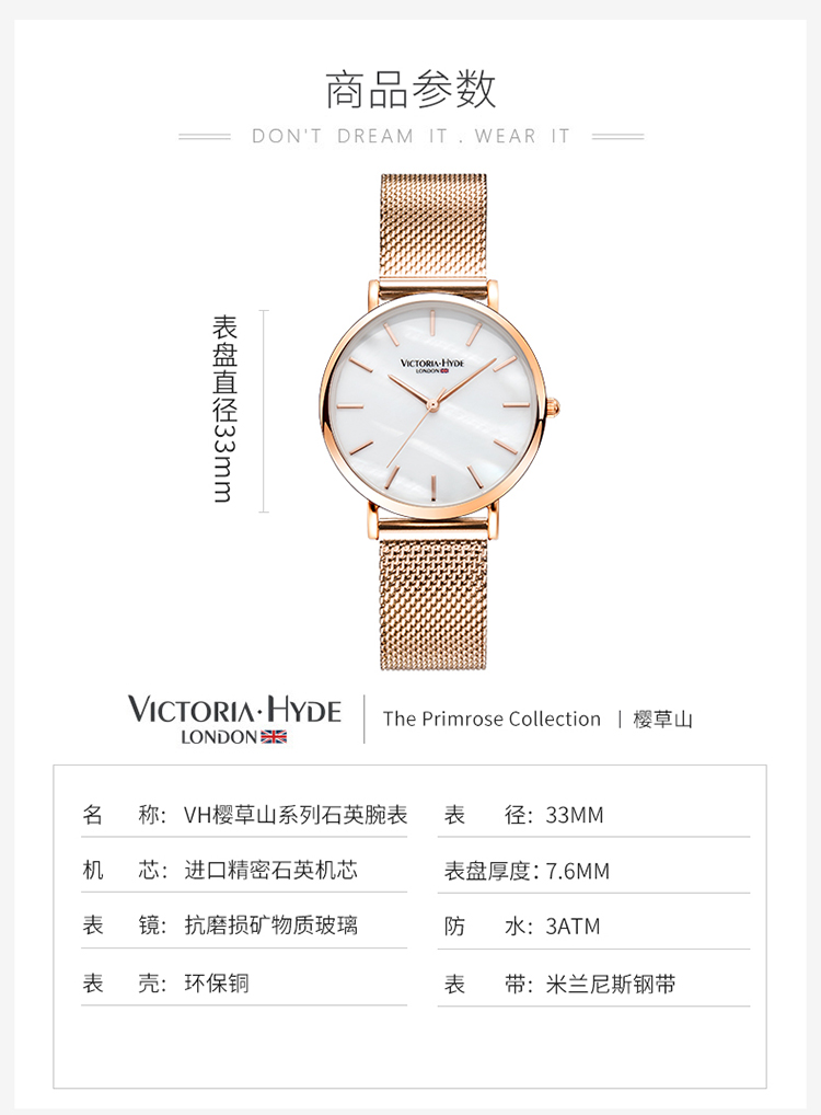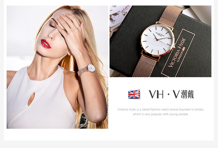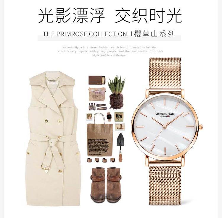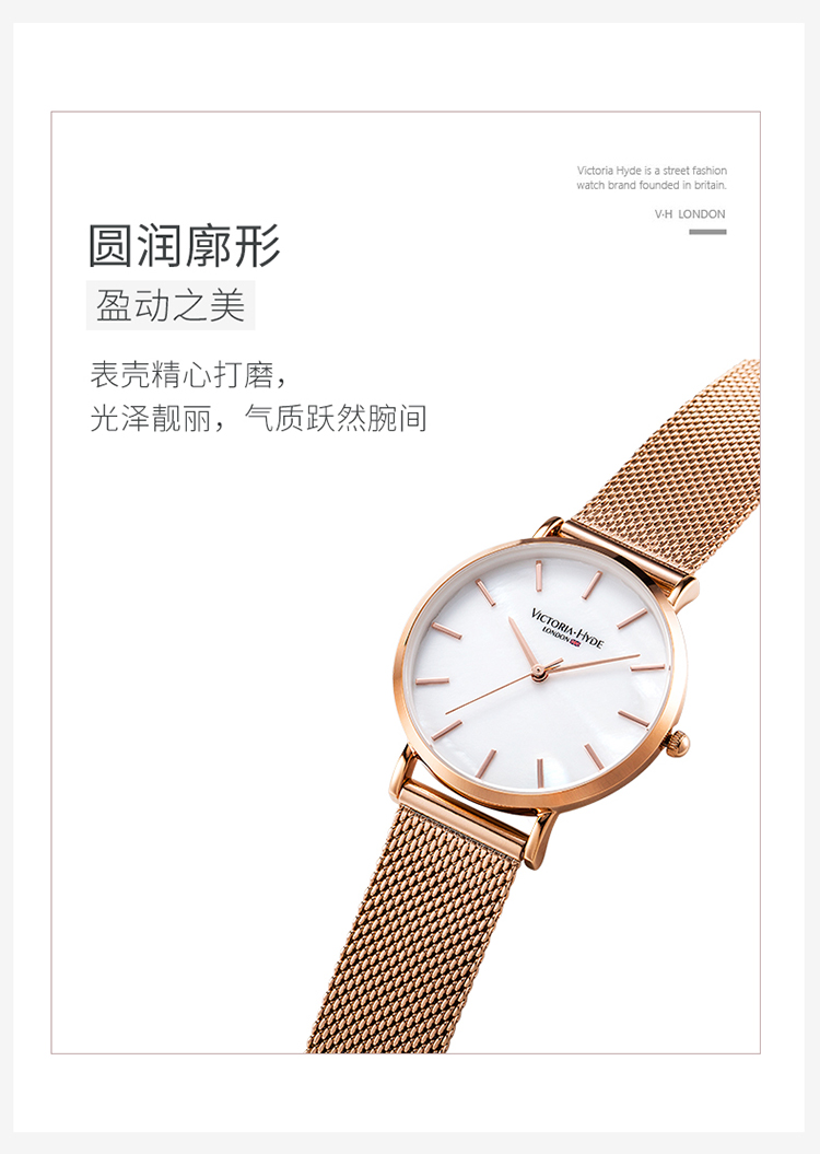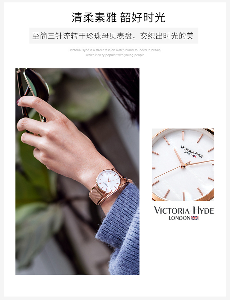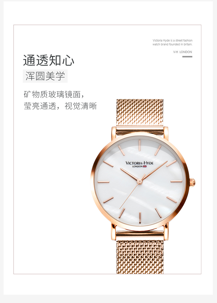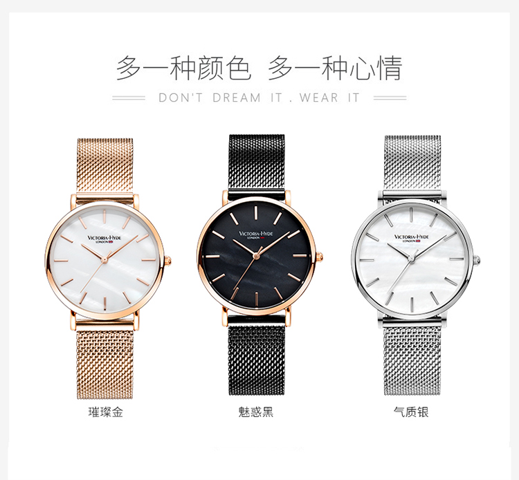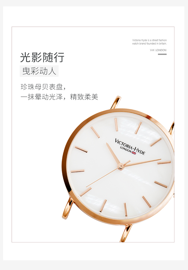 商品名称:Victoria.Hyde/维多利亚海德 手表女款 钢带防水时尚简约珍珠母贝学生vh腕表