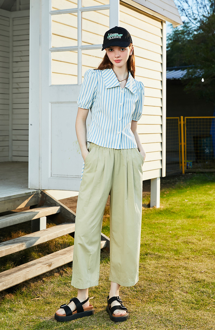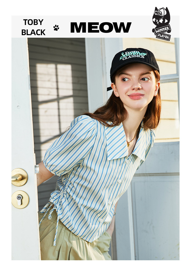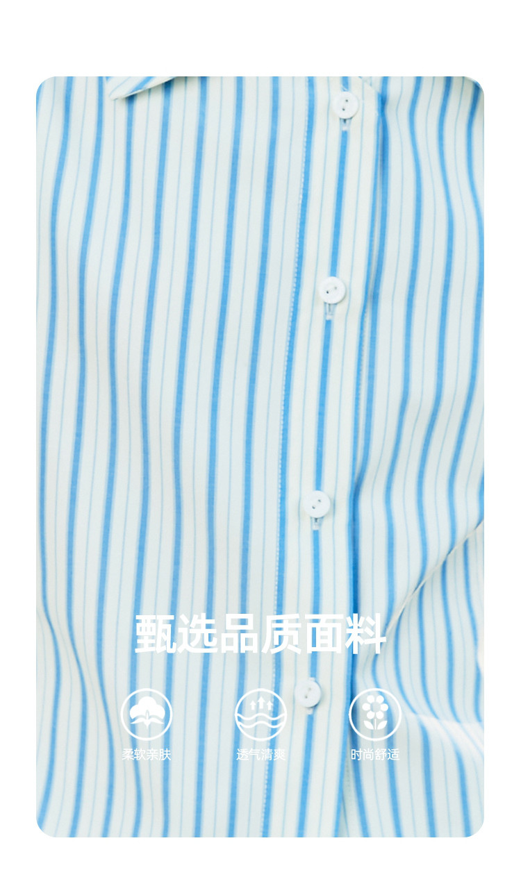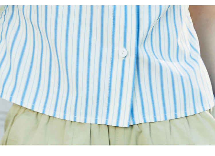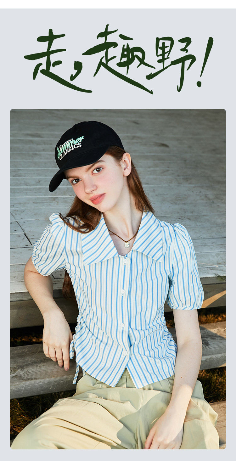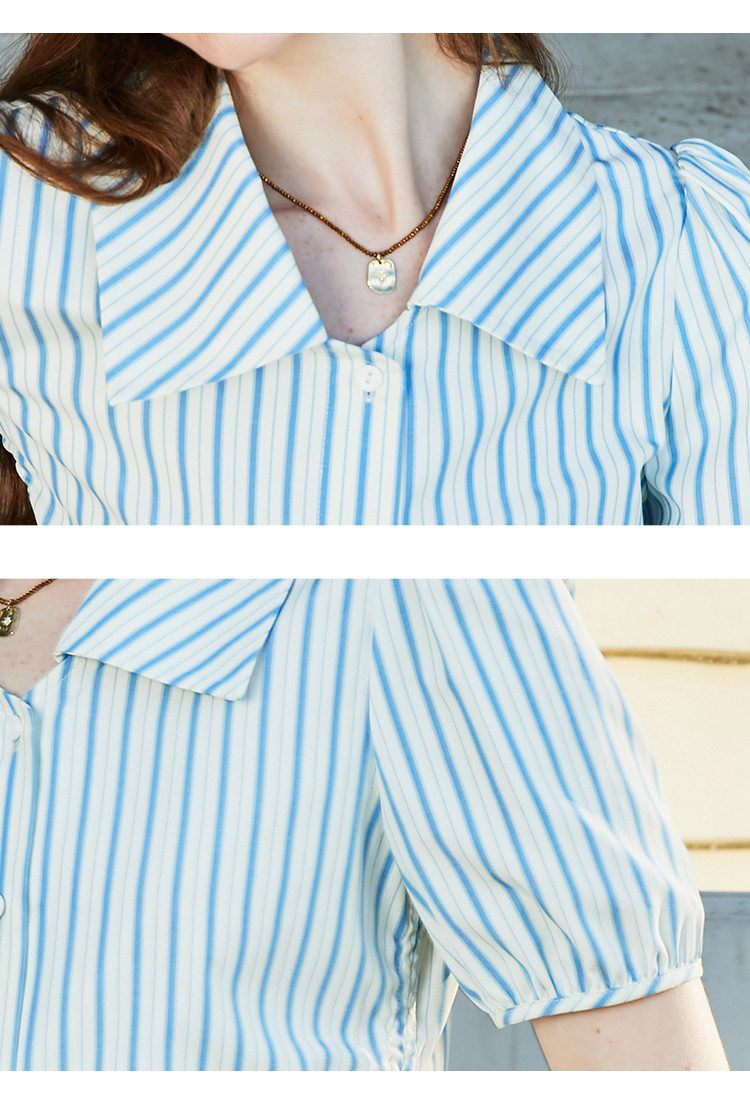 商品名称:修身抽绳设计感条纹女式衬衫夏季泡泡袖小清新上衣 531485