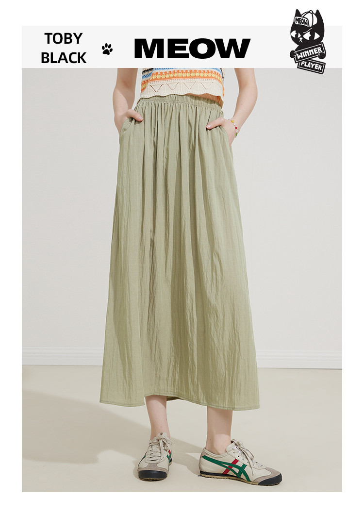 商品名称:纯色简约中长款垂感a字裙夏季宽松街头风休闲百搭半截裙 728349