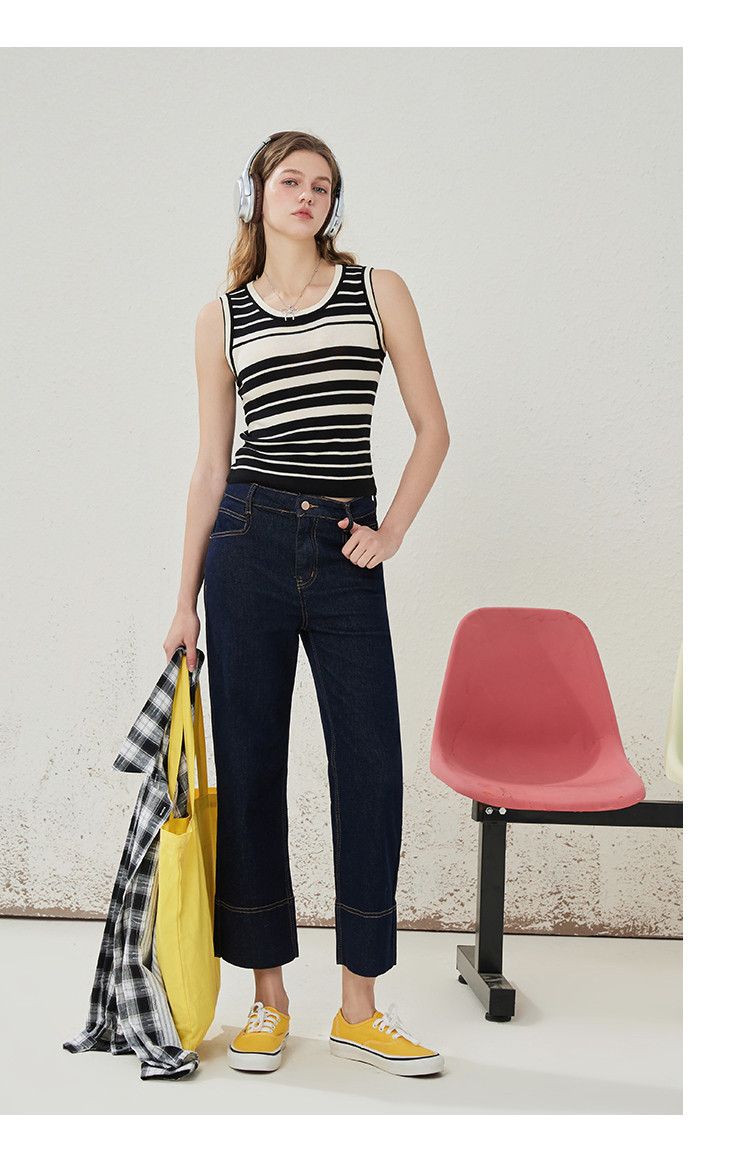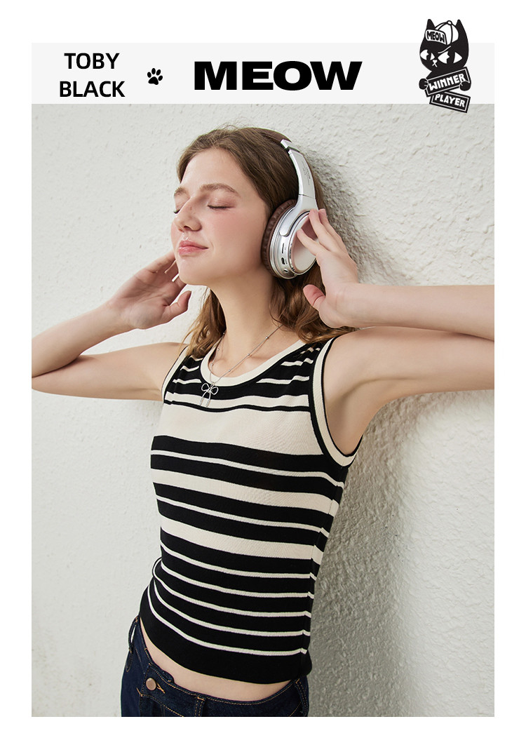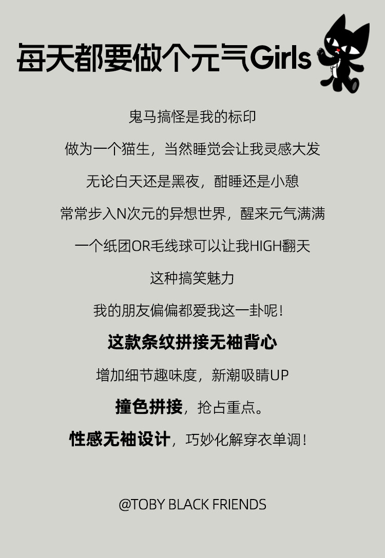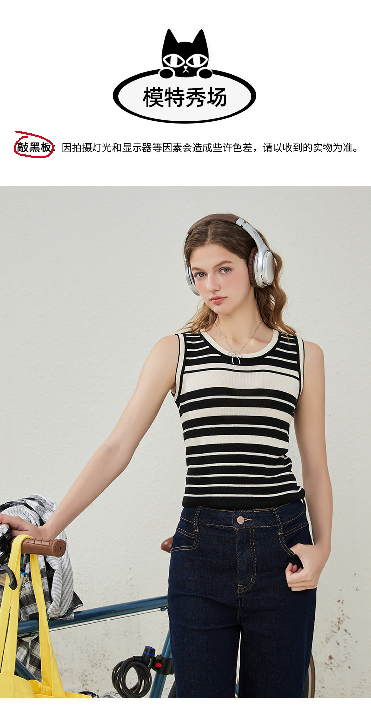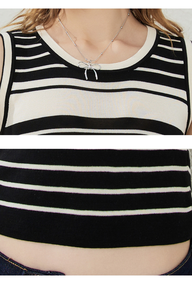 商品名称:黑白条纹百搭休闲打底针织无袖上衣夏季修身显瘦女式背心 537309