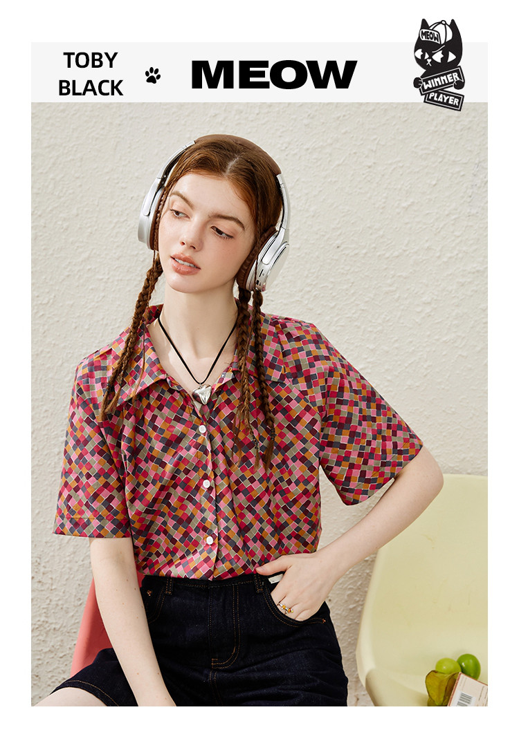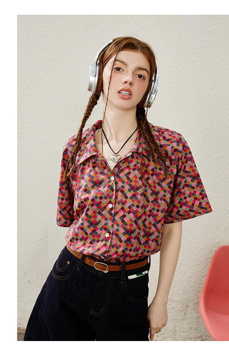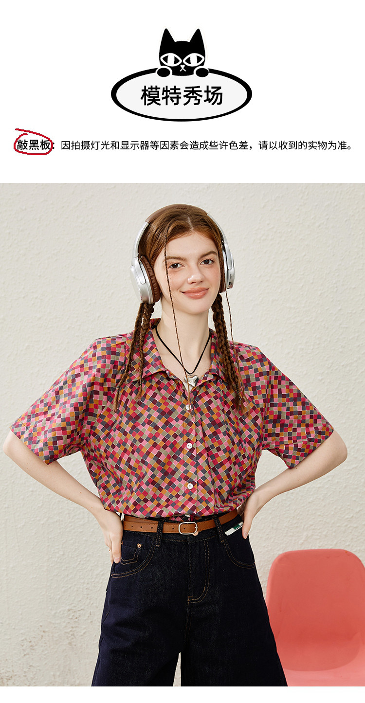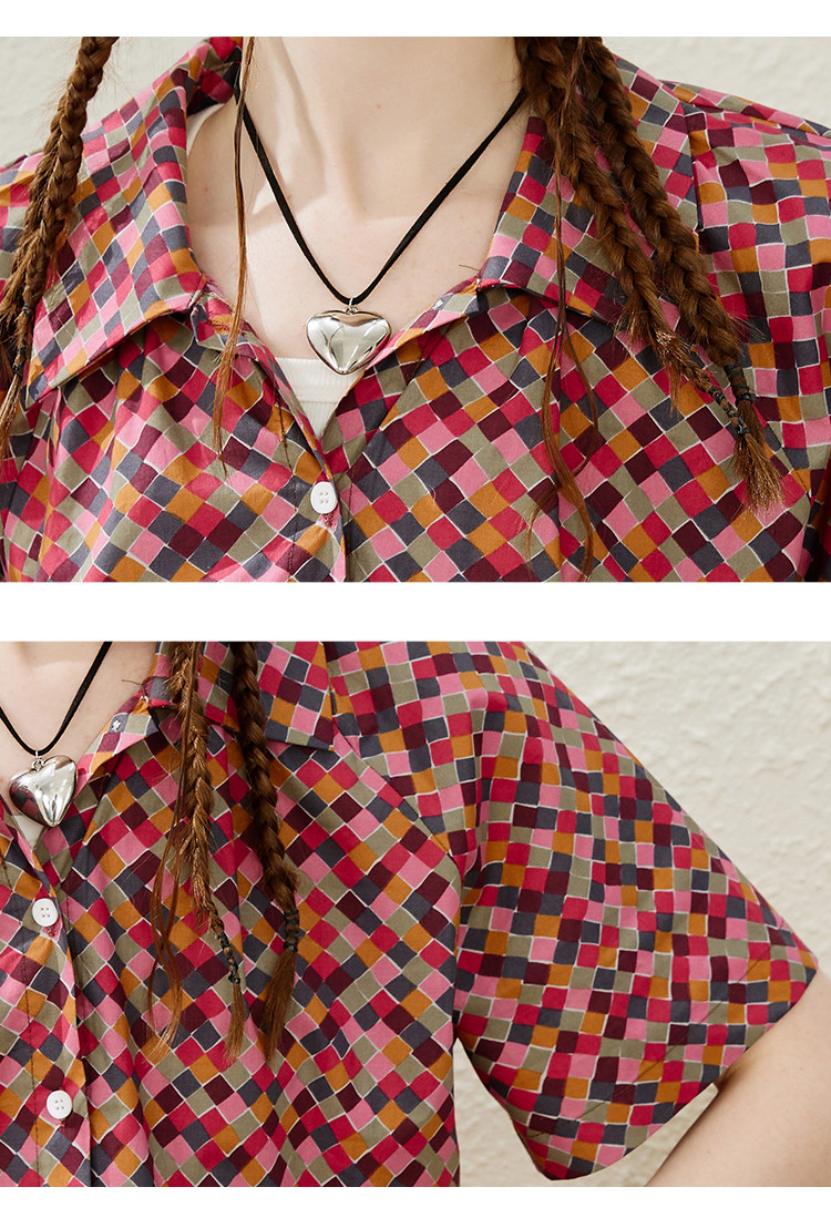 商品名称:【100%棉】碎花洋气时髦女式衬衫夏季格纹短袖上衣 342237