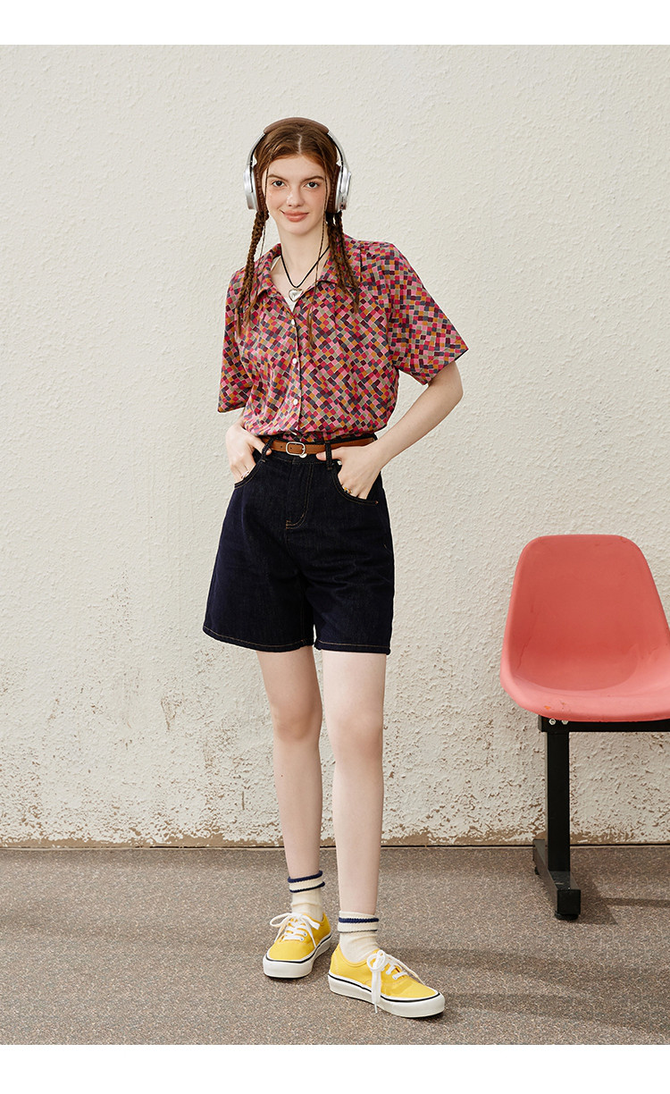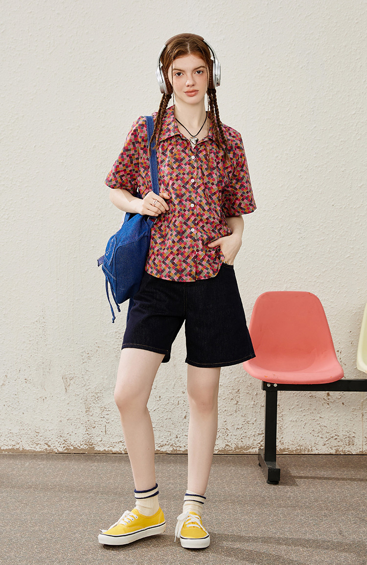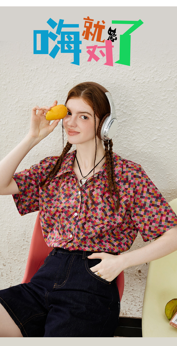 商品名称:【100%棉】碎花洋气时髦女式衬衫夏季格纹短袖上衣 342237