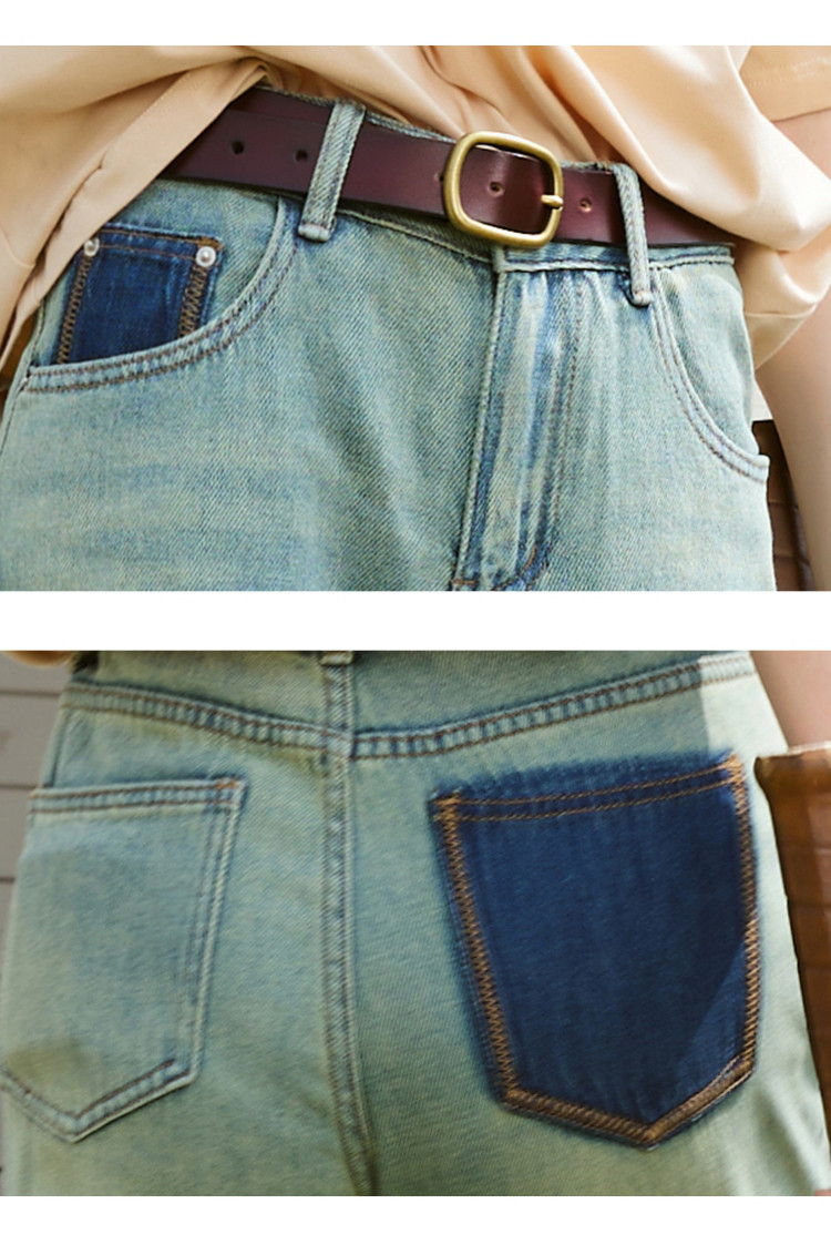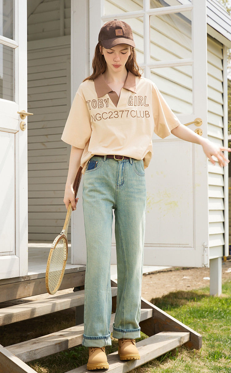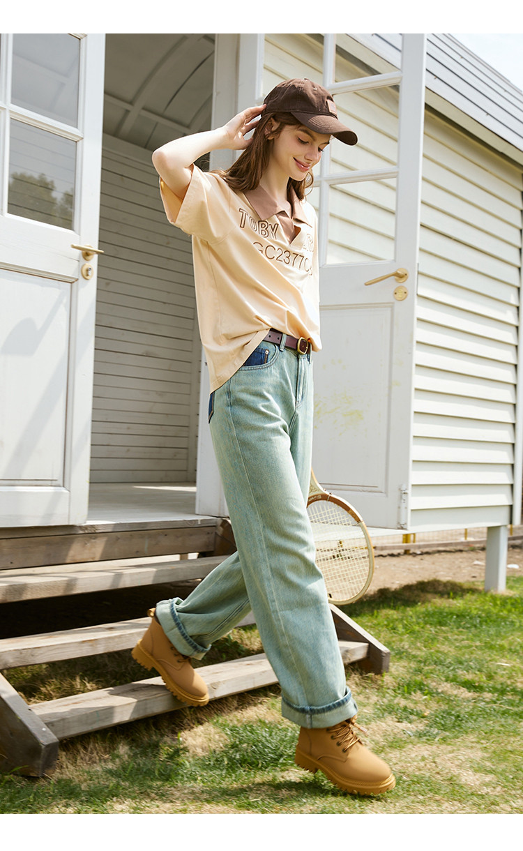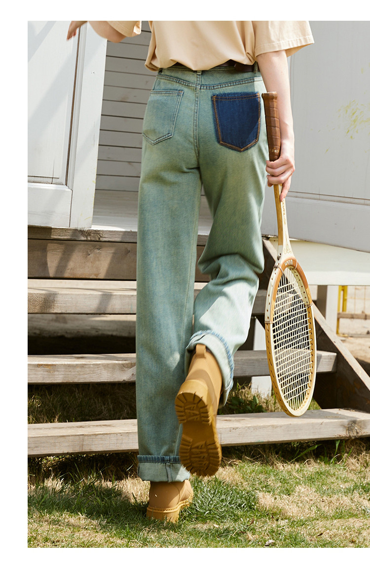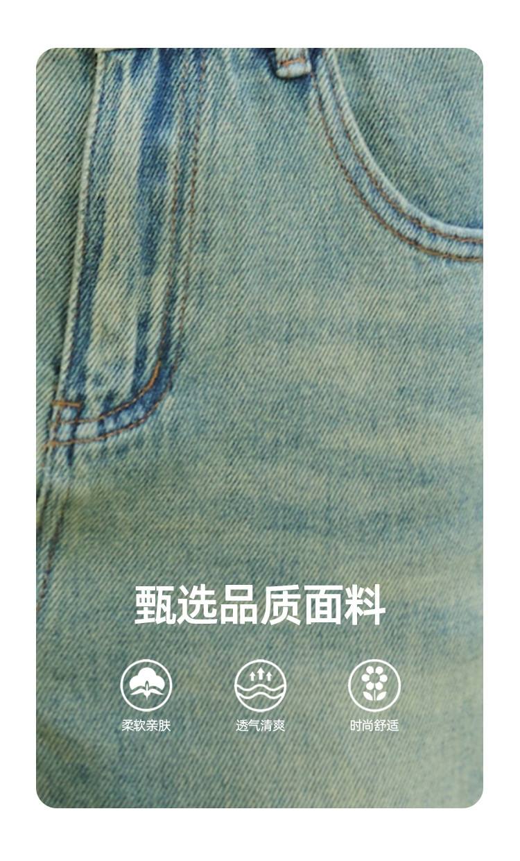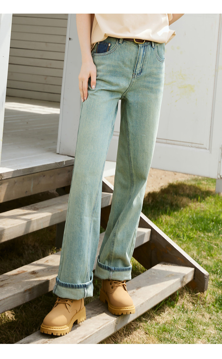 浅色经典款水洗做旧高腰直筒裤夏季休闲百搭女式牛仔裤 083869