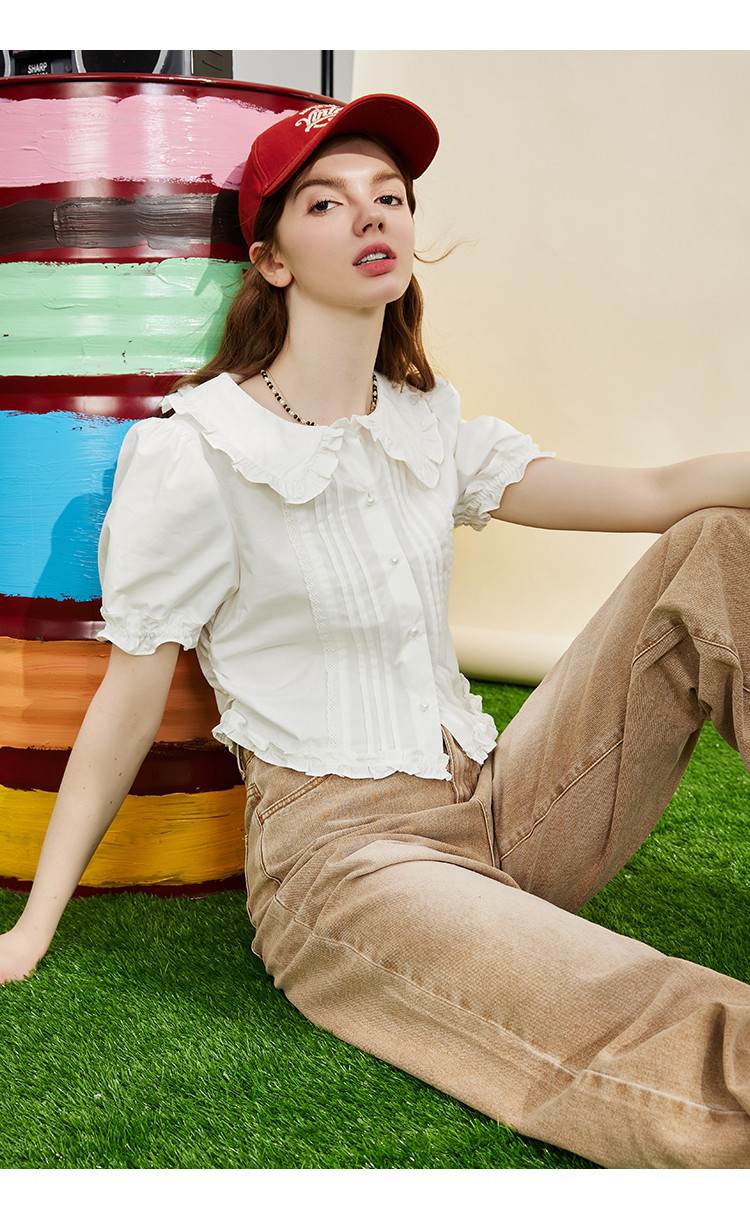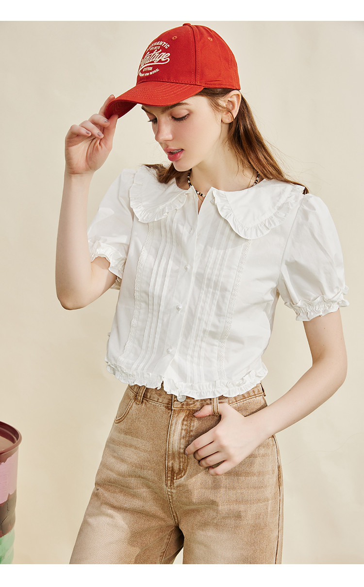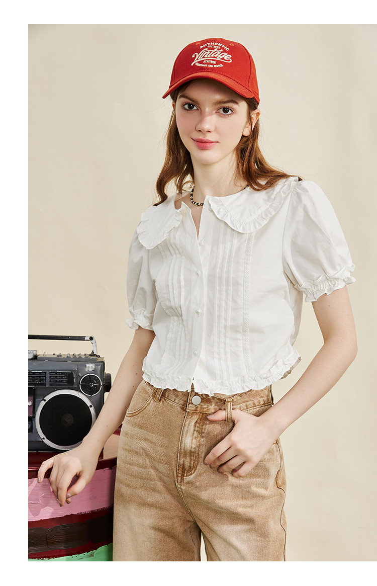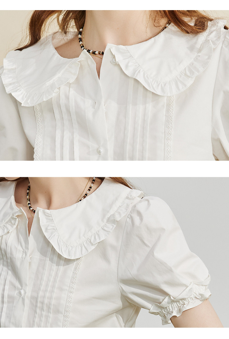 商品名称:【100%棉】法式小个子木耳边设计女式衬衫夏季 589853