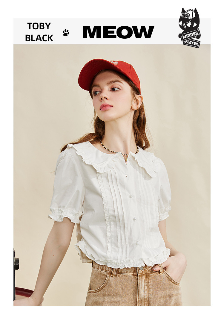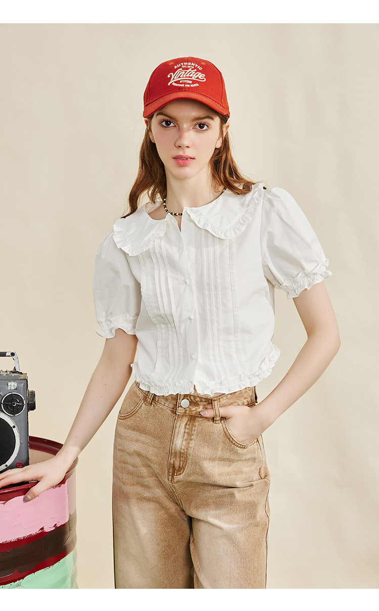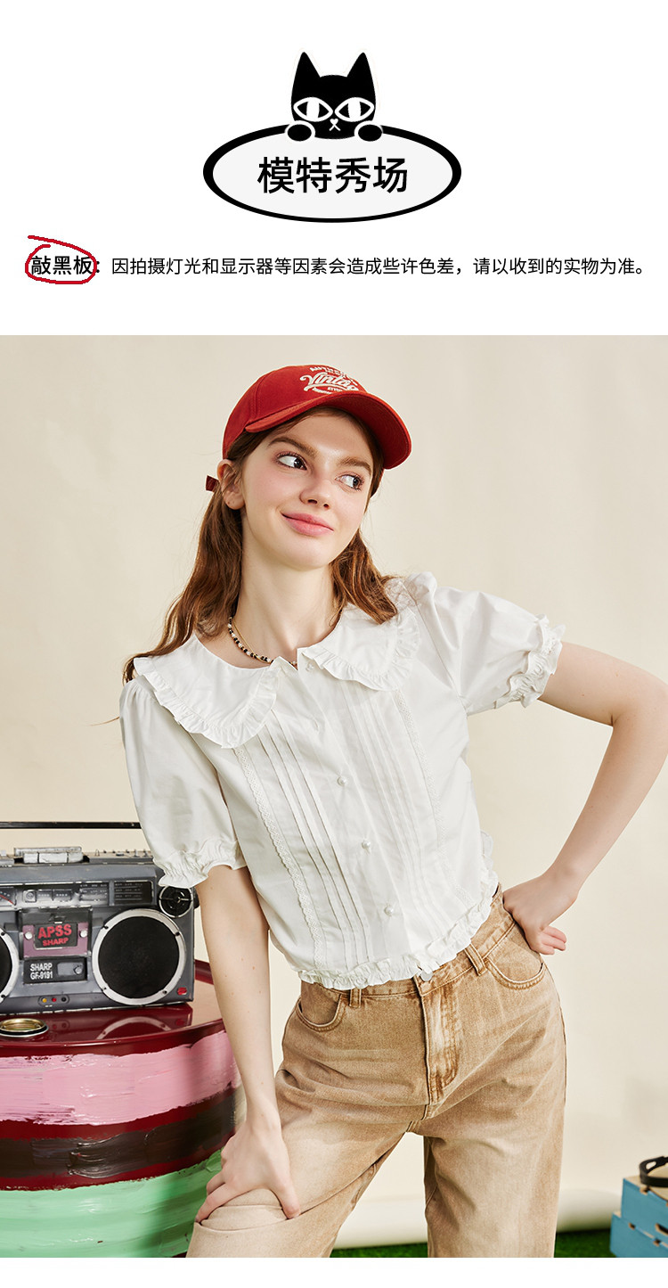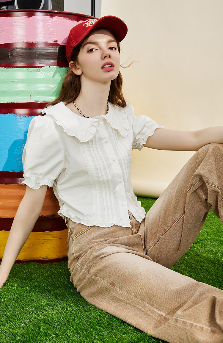 商品名称:【100%棉】法式小个子木耳边设计女式衬衫夏季 589853