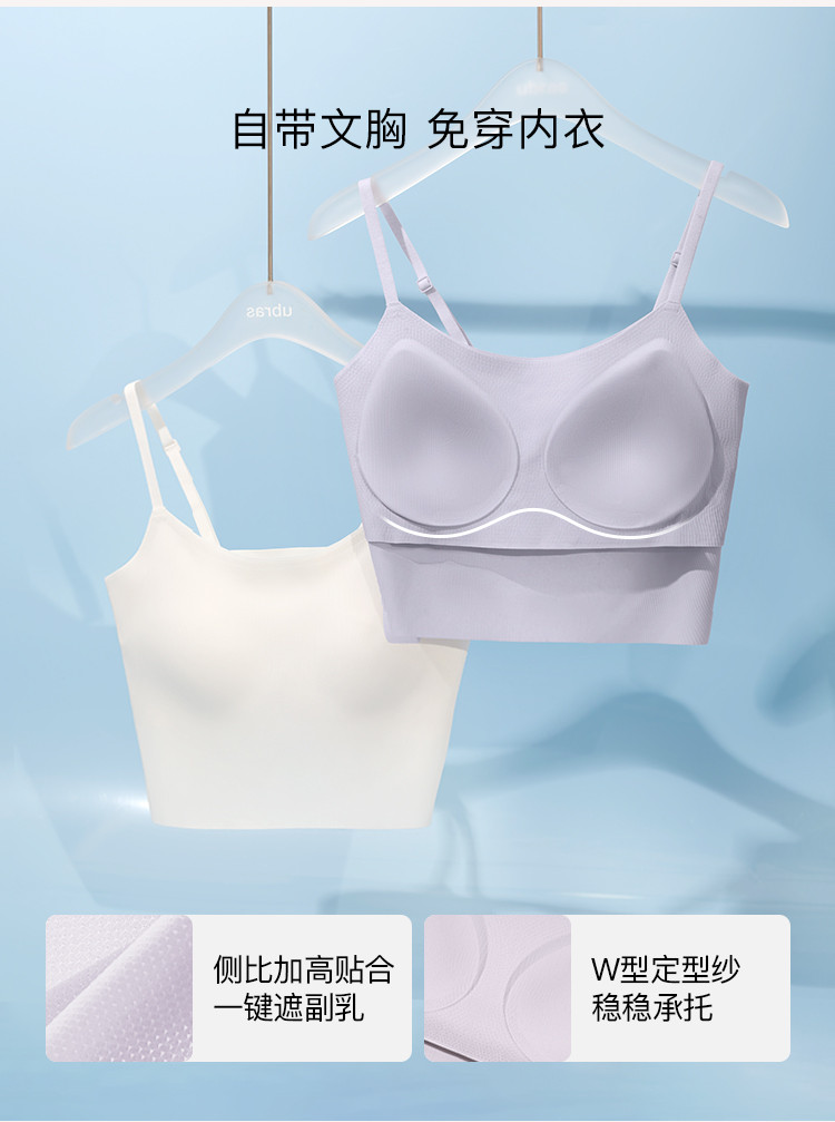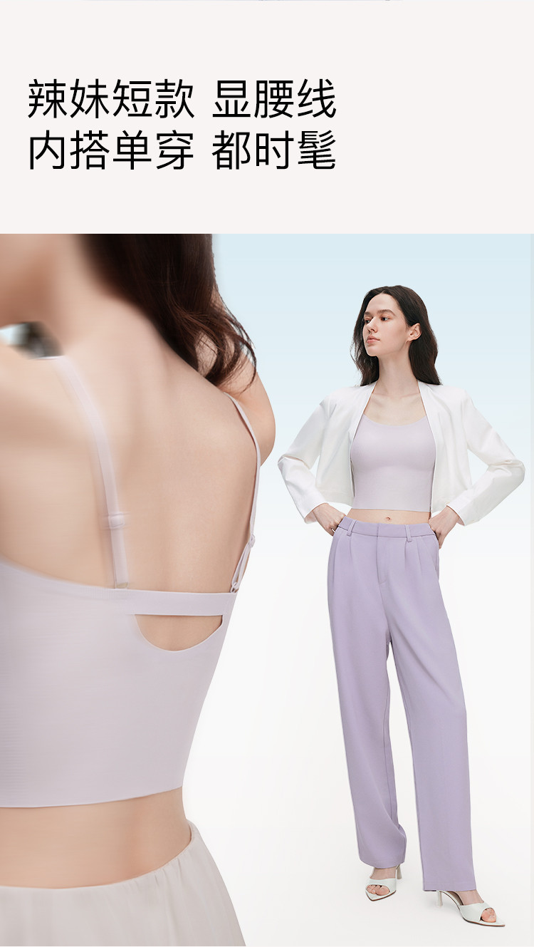 商品名称:【小凉风带胸垫】镂空美背无痕吊带打底背心bra-in聚拢薄款 591360