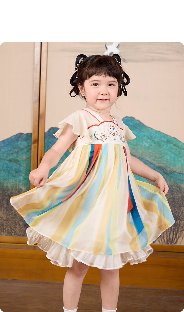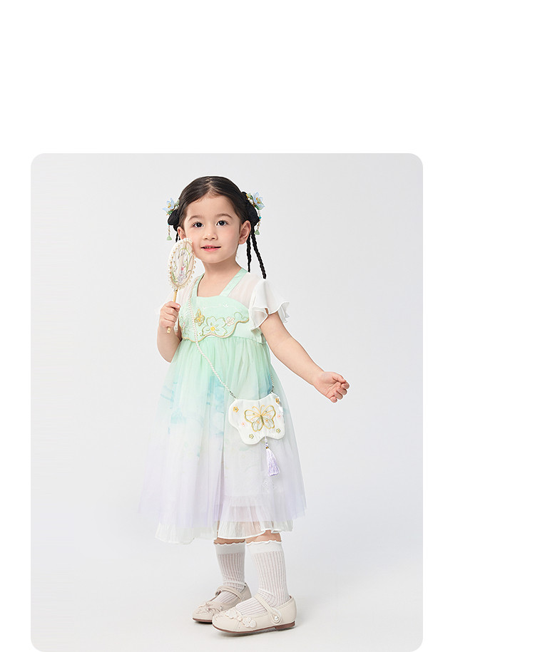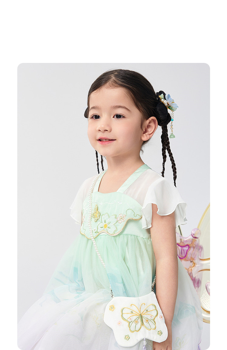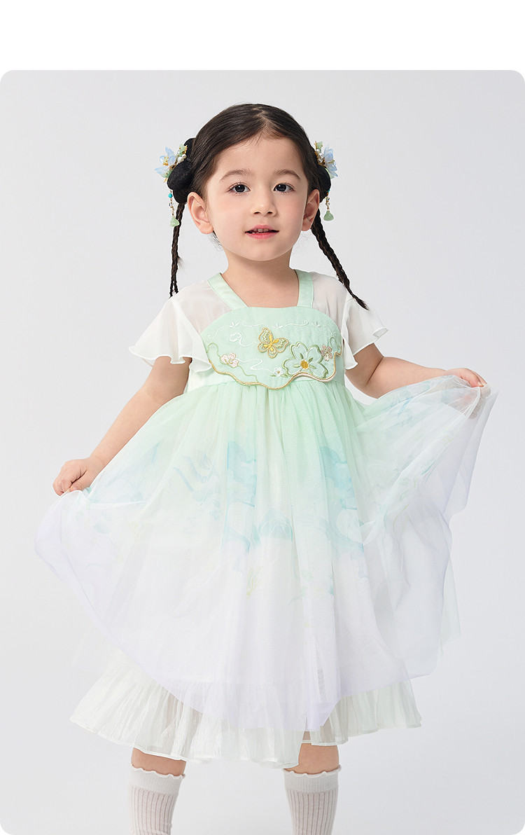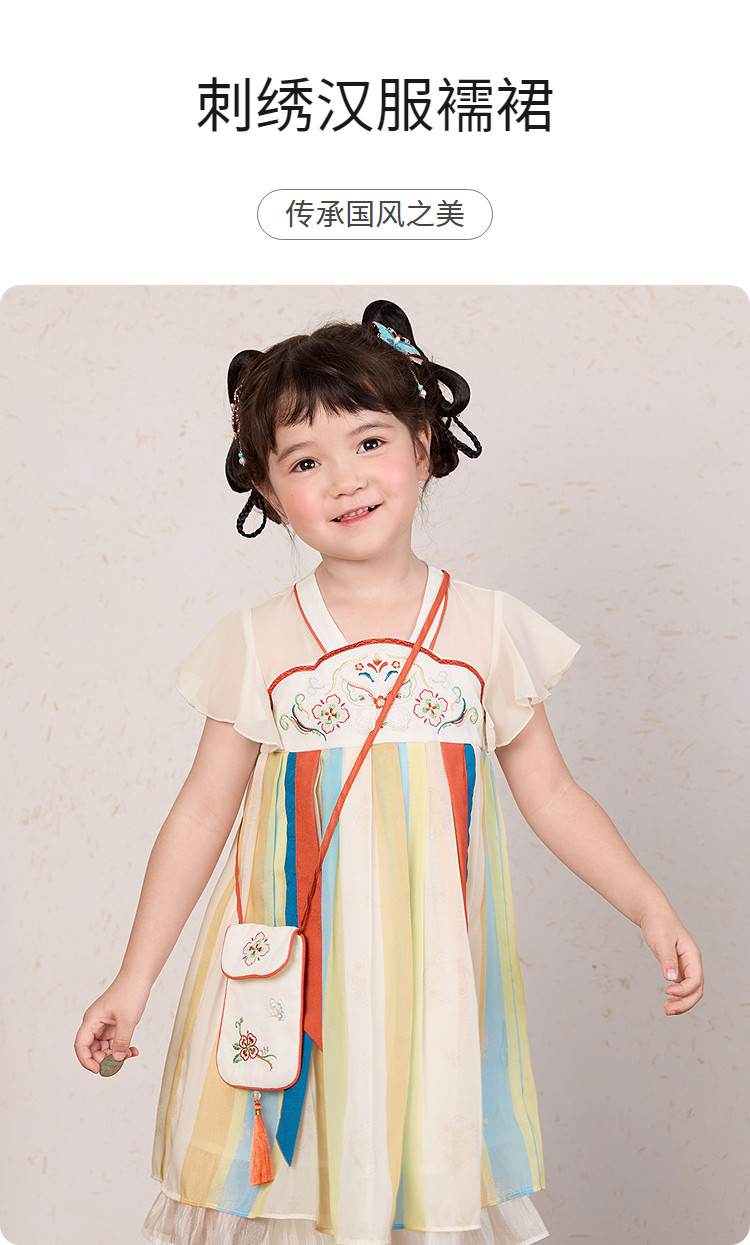 商品名称:甜美高级国风裙子女童公主裙甜美女童裙夏季刺绣汉服襦裙连衣裙 989701
