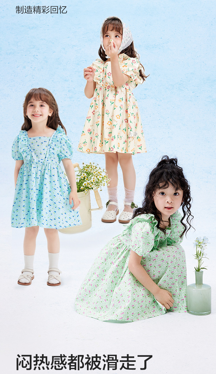 巴拉巴拉童装儿童连衣裙女童纯棉裙子夏季蝴蝶结背心裙甜美度假风 262277