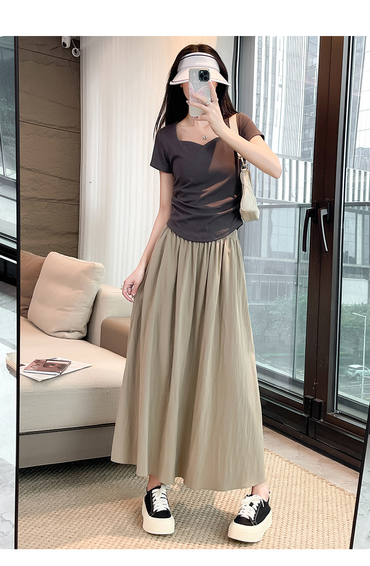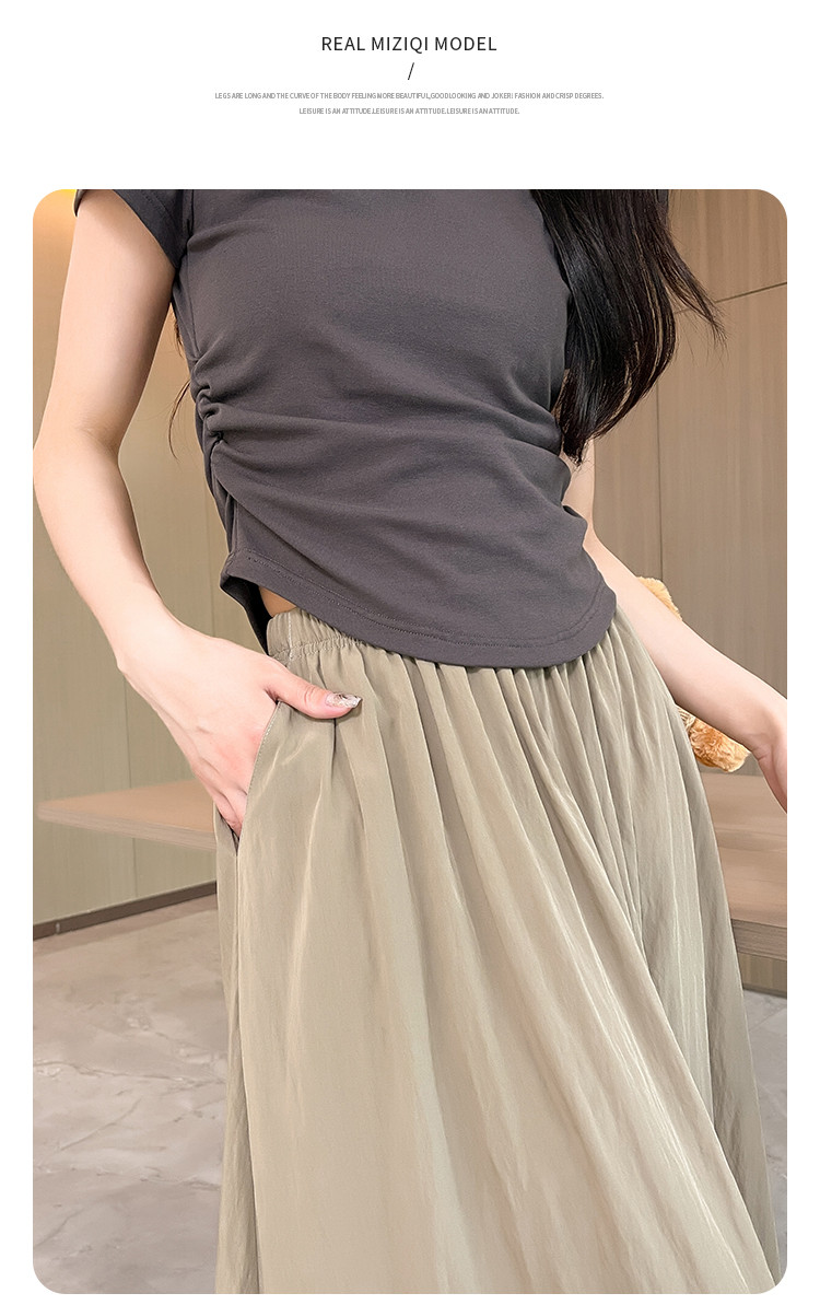 商品名称:米子旗夏季宽松半身长裙女松紧腰设计冰丝山本裙显瘦遮肚伞裙 942490