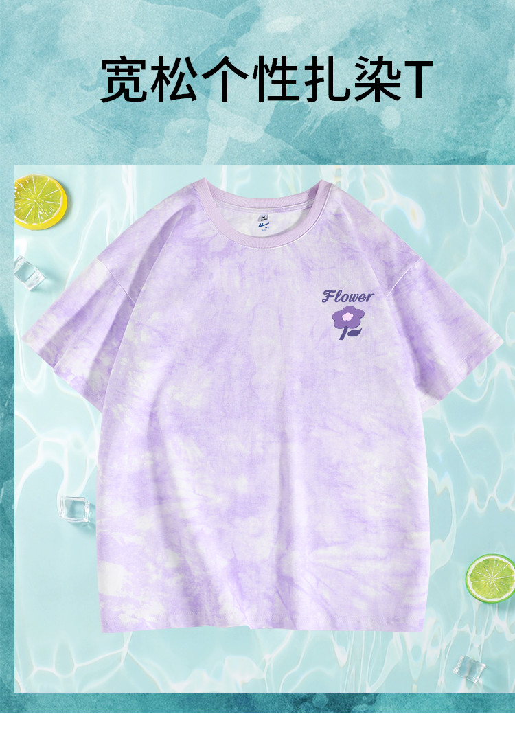 商品名称:【女装】扎染短袖女式T恤夏季宽松少女感穿搭纯棉上衣 527379