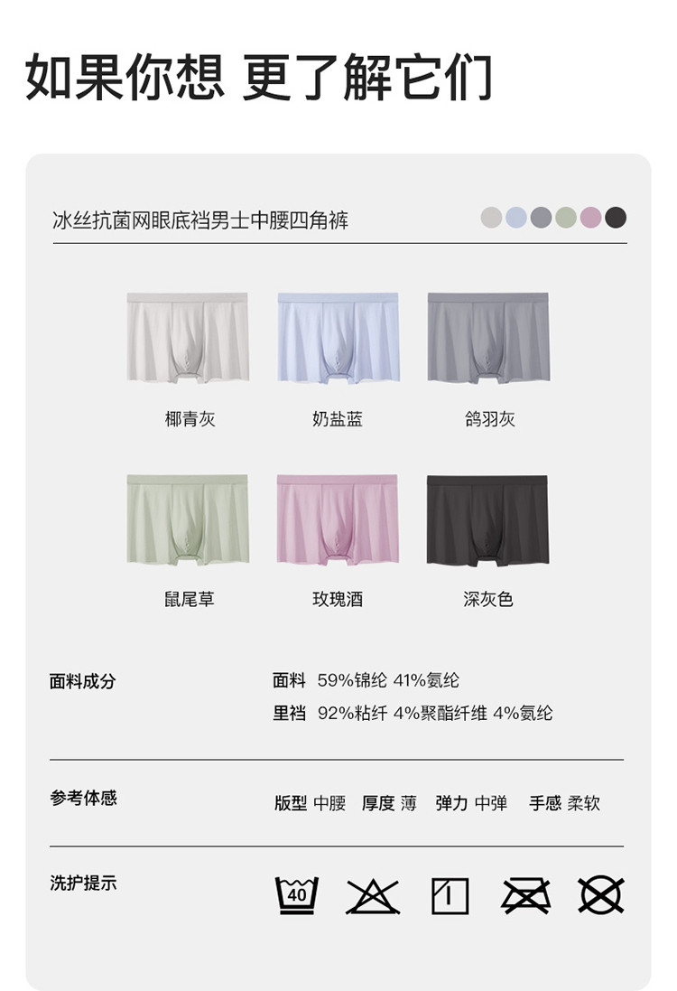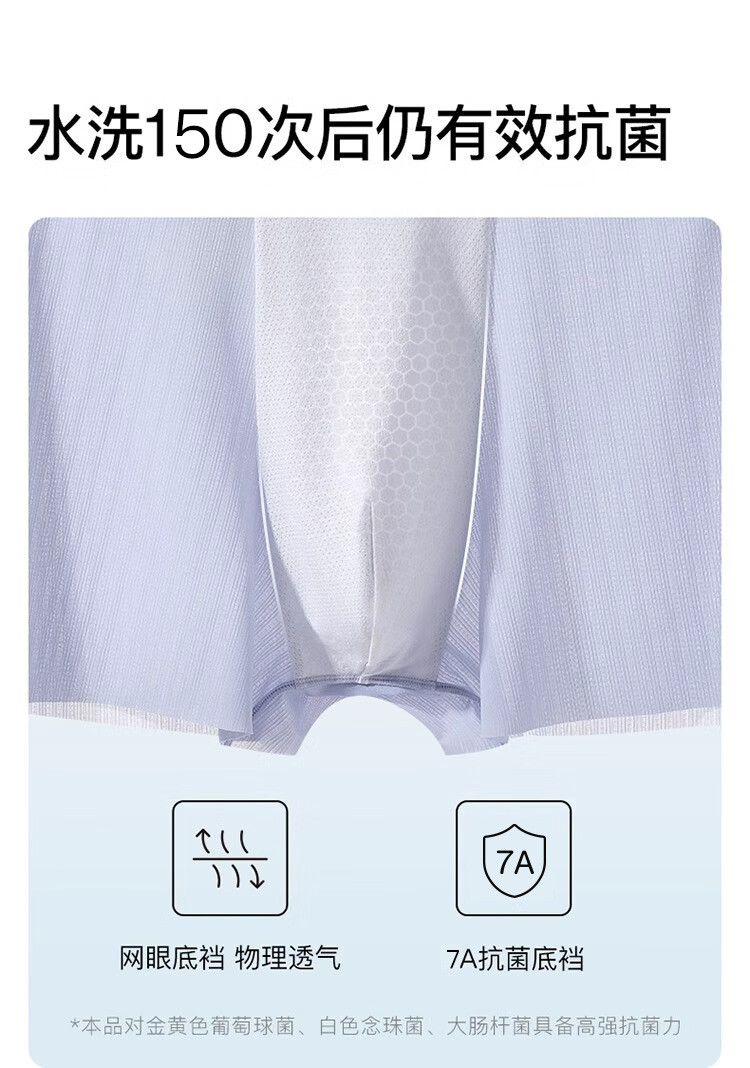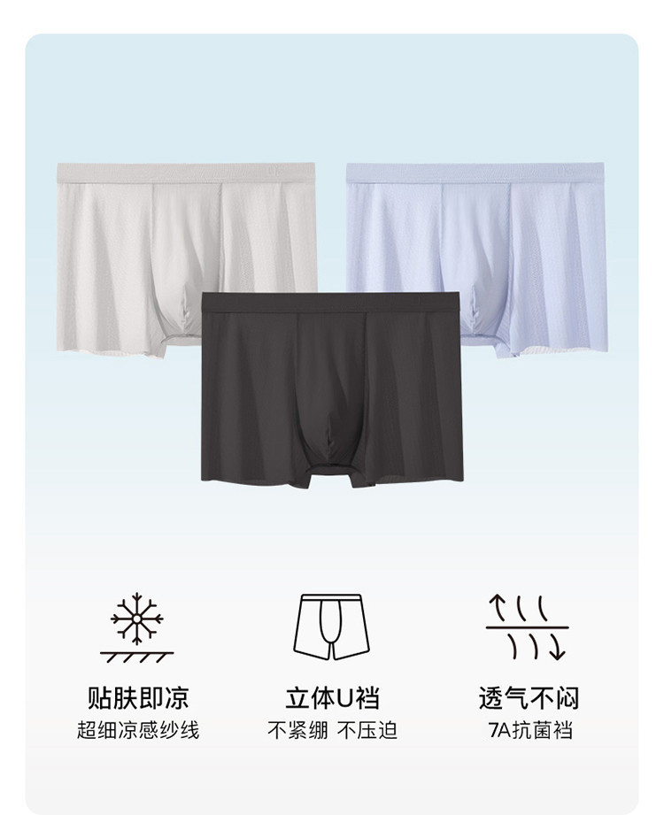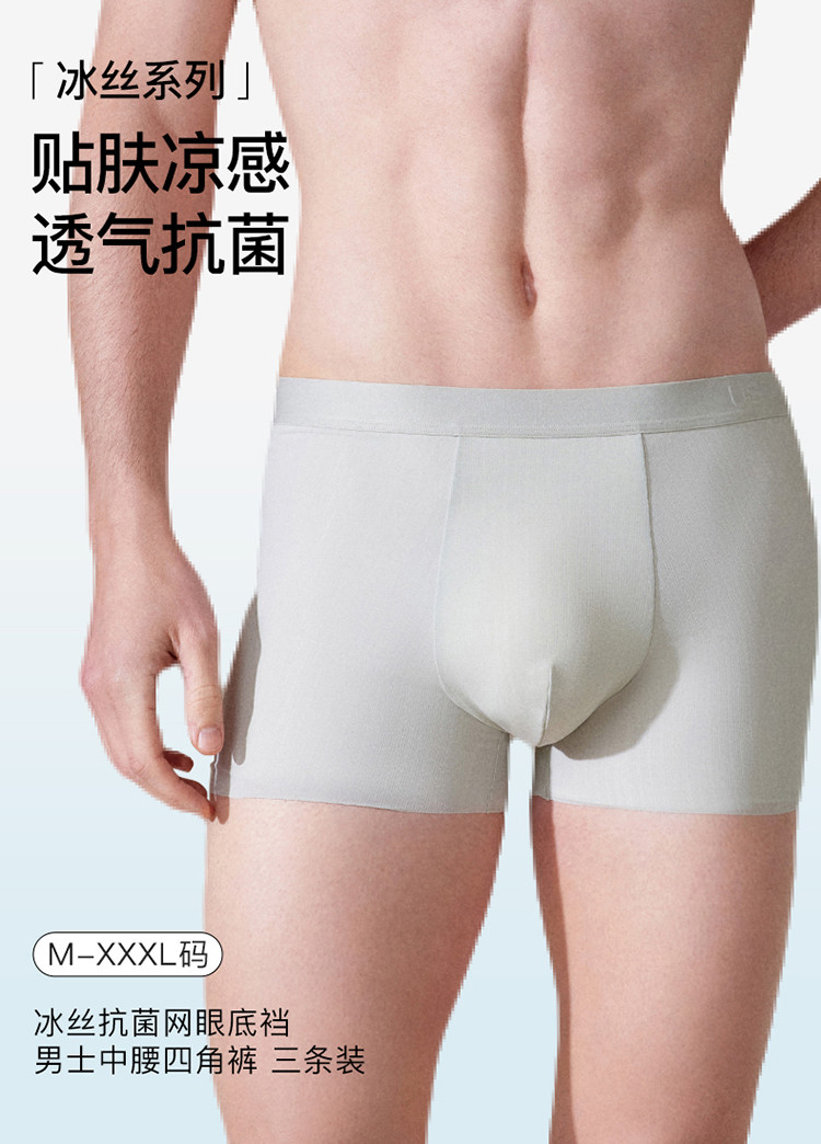 商品名称:【7A抗菌底档】冰丝透气男士中腰四角裤平角内裤夏季薄款3条装 644288