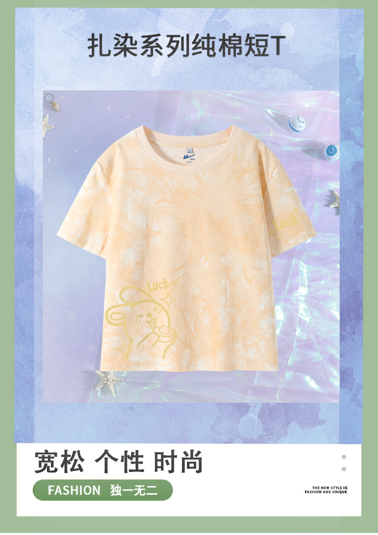 【女装】夏季扎染短款短袖纯棉女式T恤显瘦设计感上衣 479955