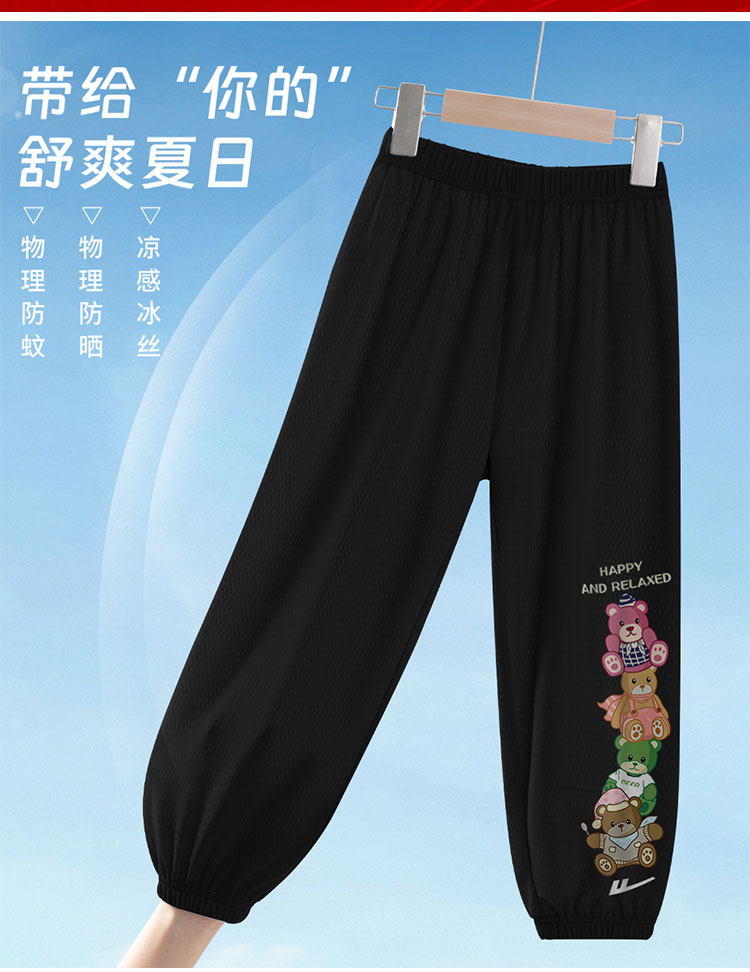 商品名称:男童裤子夏季薄款透气凉凉裤儿童夏装束脚防蚊裤男孩休闲运动长裤 209363