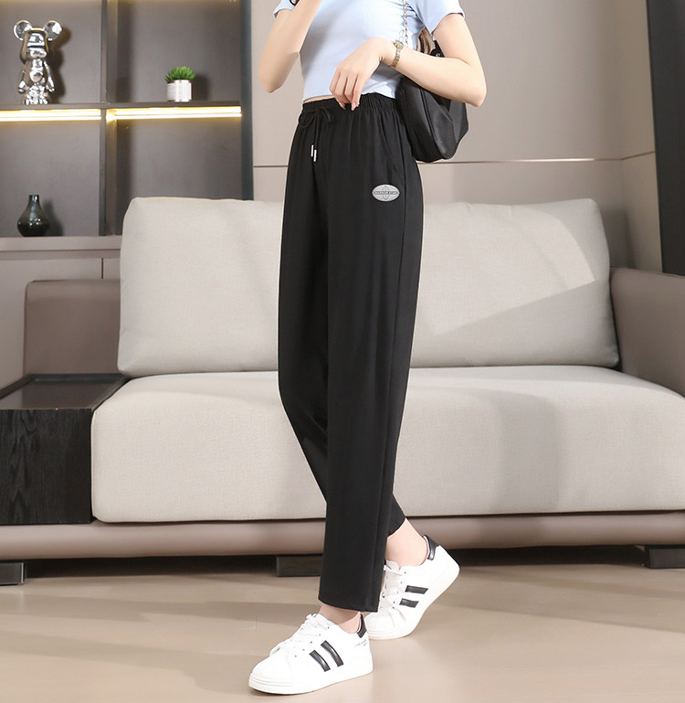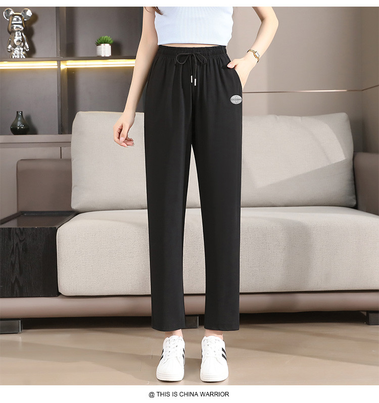 商品名称:弹力腰垂感冰丝直筒裤女显腿长百搭休闲裤潮流裤子女显瘦长裤 653139