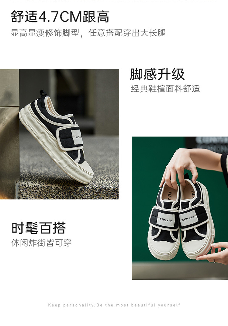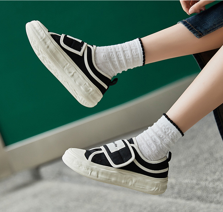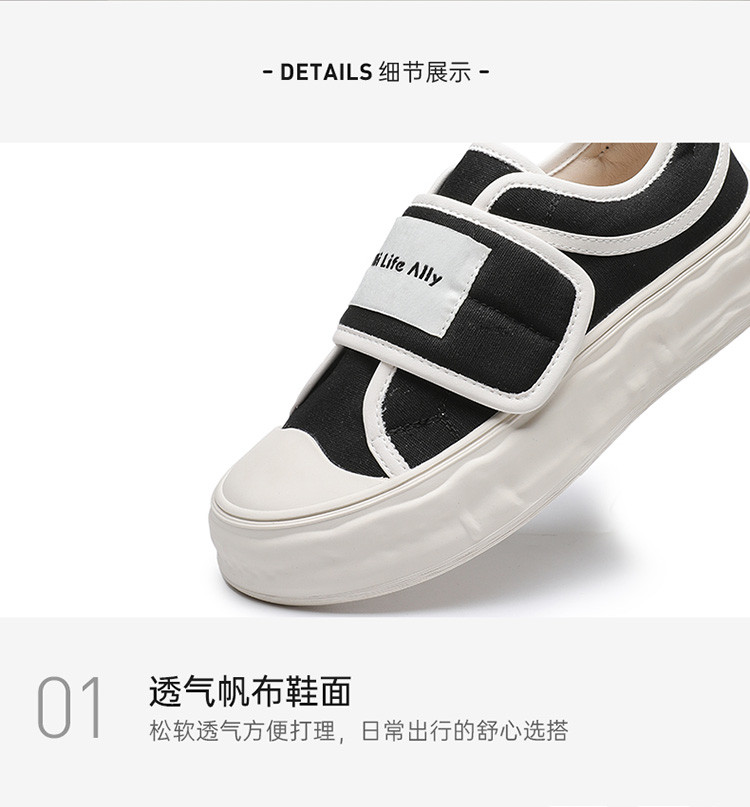商品名称:帆布鞋女休闲鞋休闲鞋子女学生百搭通勤魔术贴女鞋透气 657807