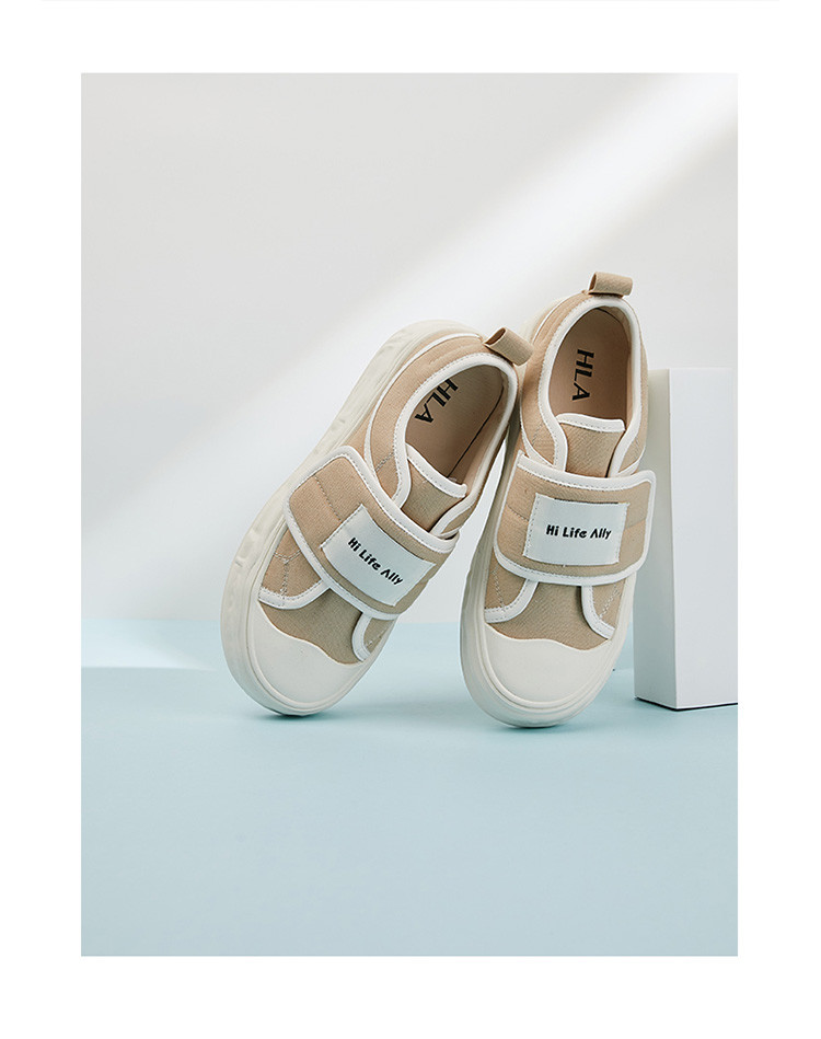 帆布鞋女休闲鞋休闲鞋子女学生百搭通勤魔术贴女鞋透气 657807