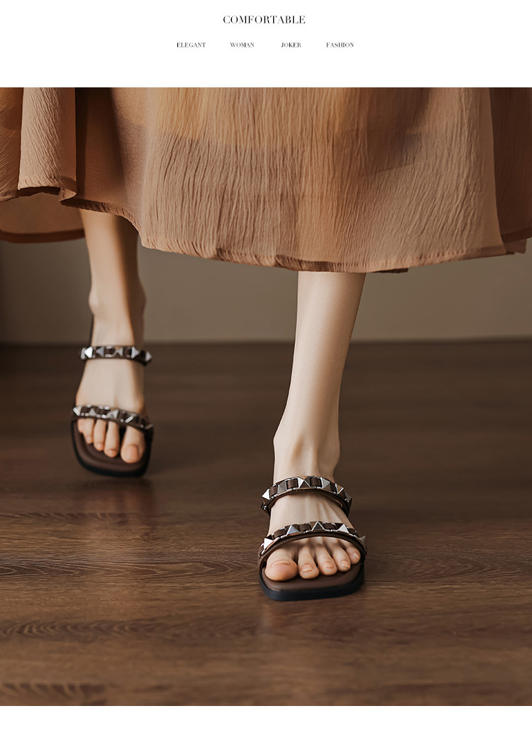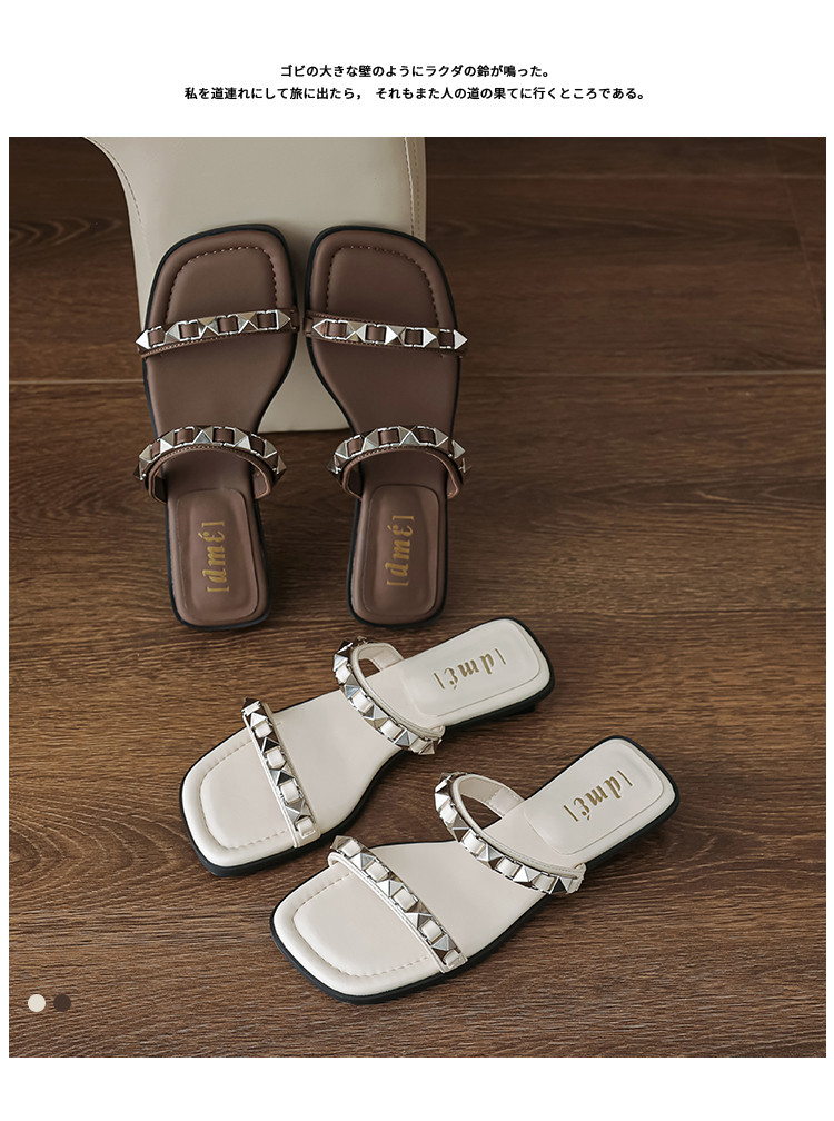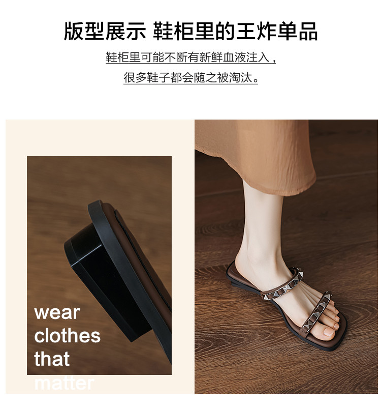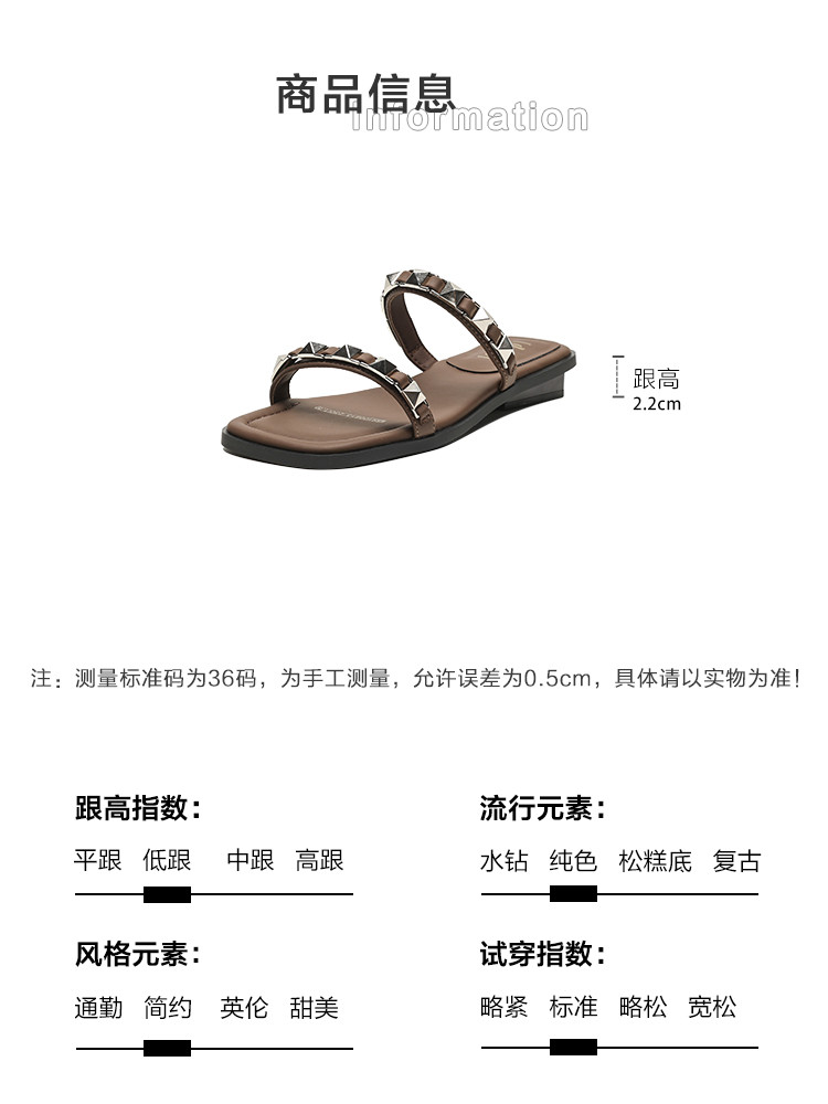 商品名称:夏季时尚百搭简约高级感金属铆钉链条外穿女拖鞋 265281