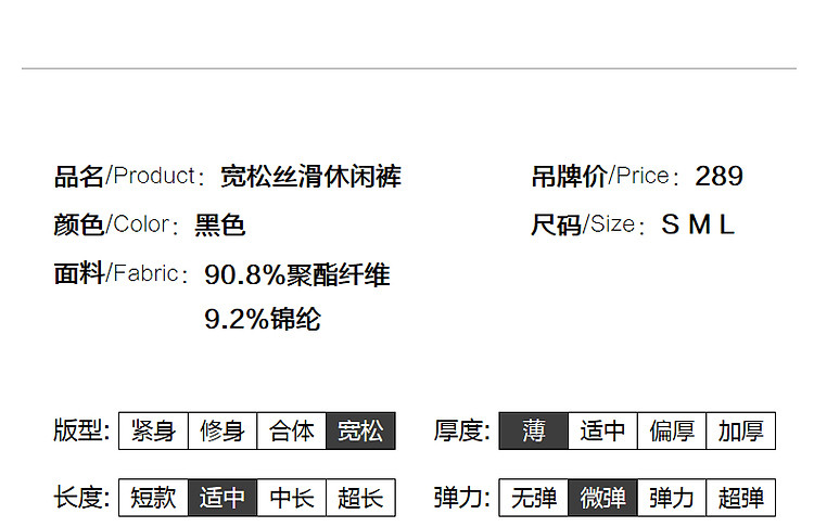 商品名称:【甜酷减龄瘦瘦裤】夏松紧腰显瘦藏肉丝滑垂坠阔腿休闲裤 448193