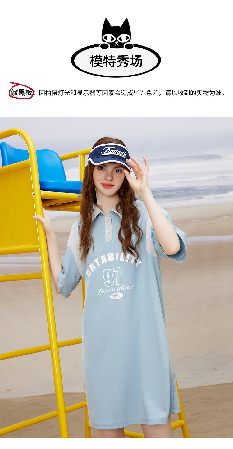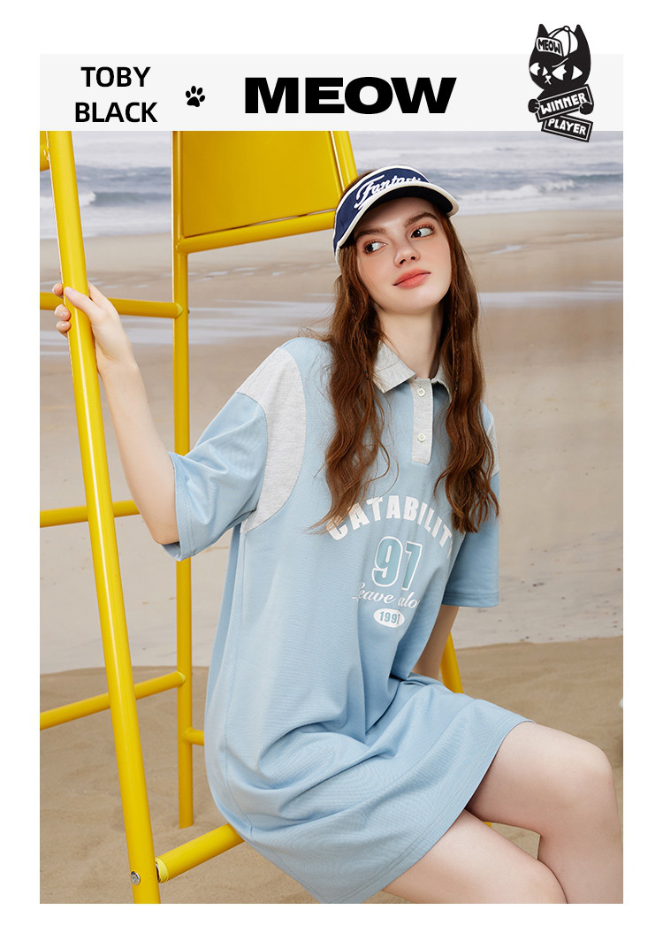 小清新撞色设计感连衣裙夏季休闲Polo领短款直筒裙 444829