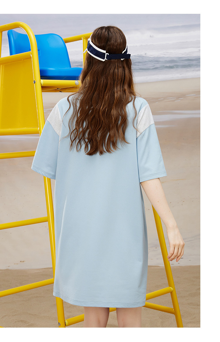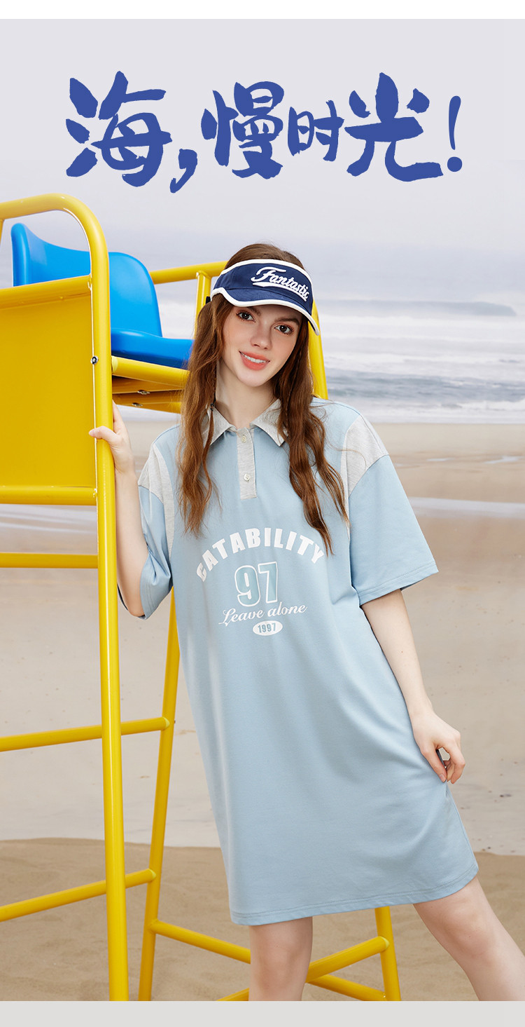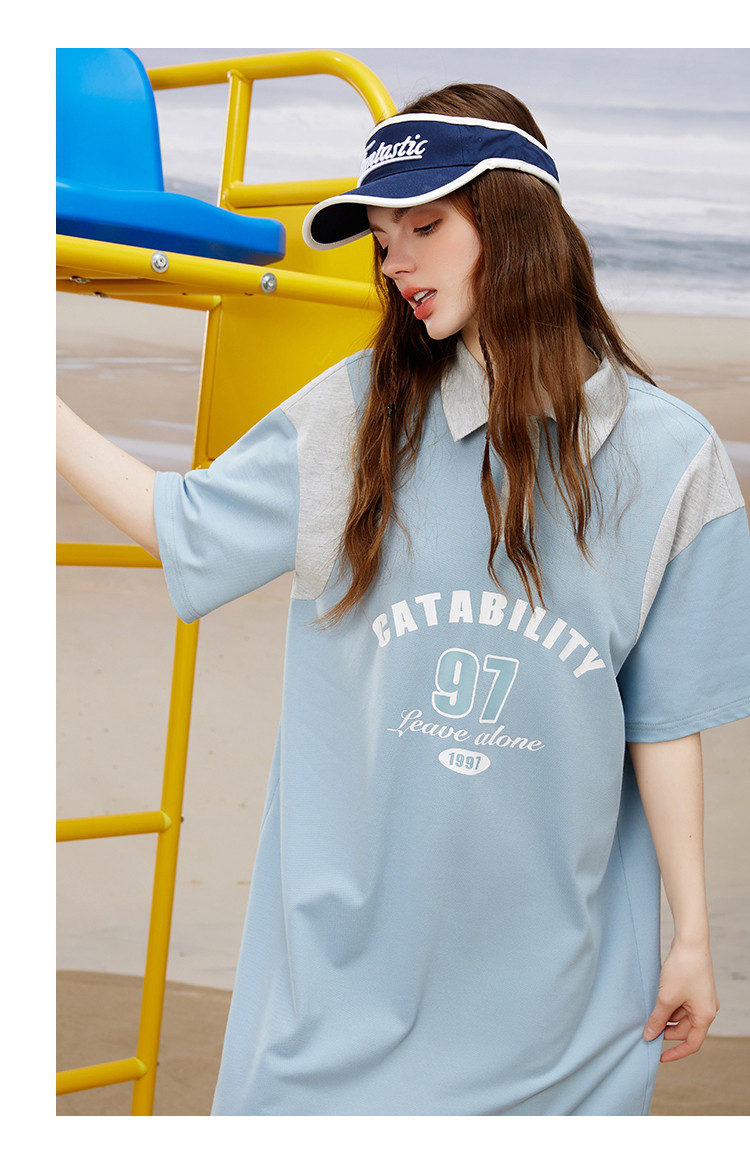 商品名称:小清新撞色设计感连衣裙夏季休闲Polo领短款直筒裙 444829