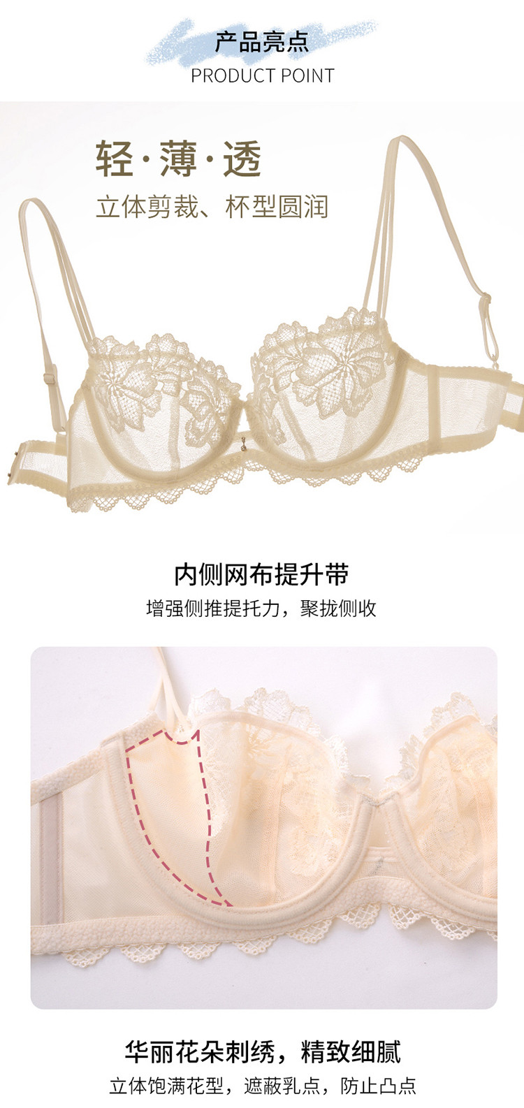 商品名称:超薄不凸点蕾丝聚拢内衣女大胸大码文胸 345925