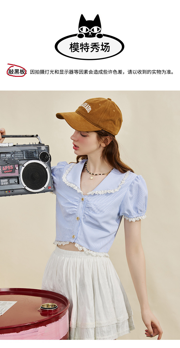 商品名称:设计师法式假日娃娃领蕾丝边小个子女式衬衫夏季气质小衫 190365