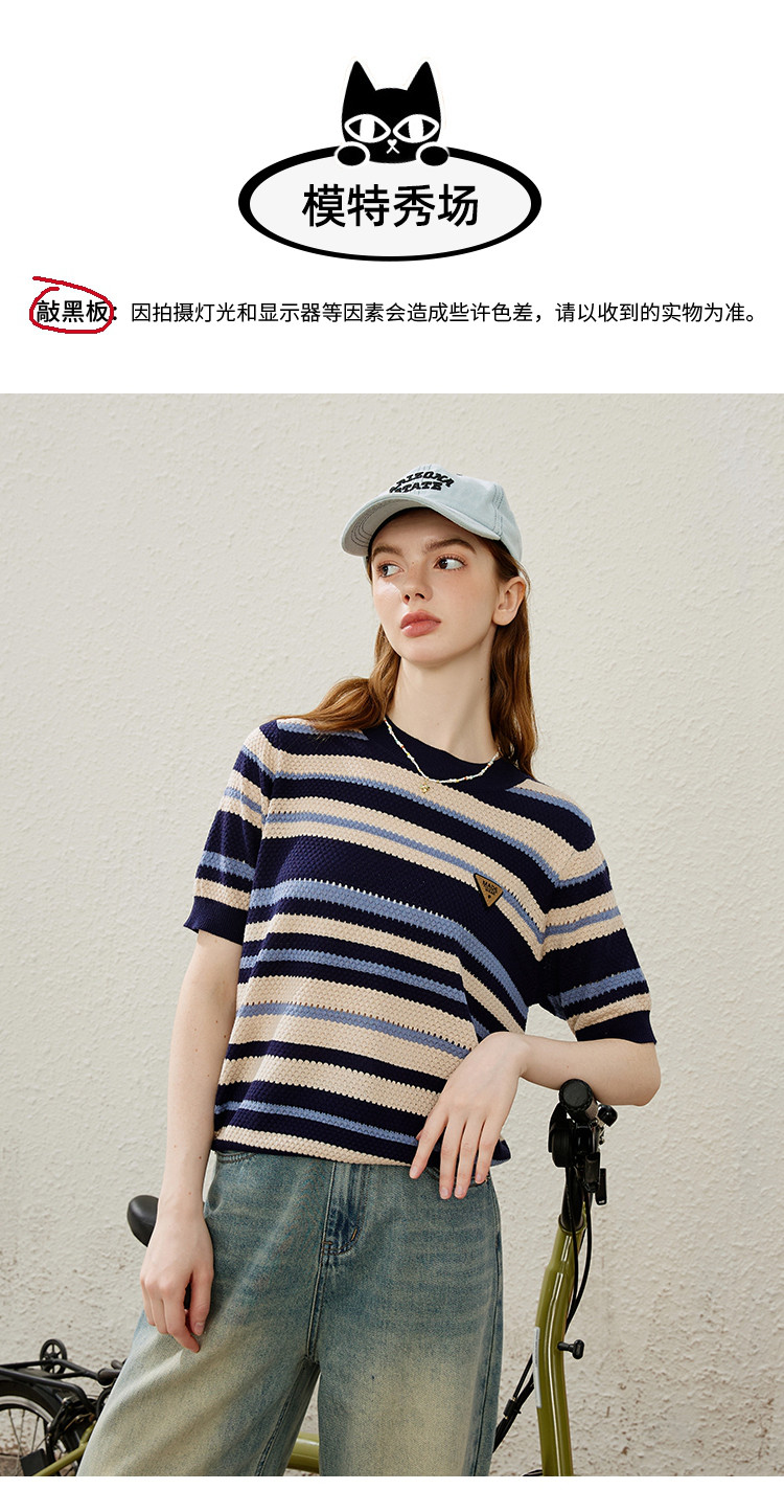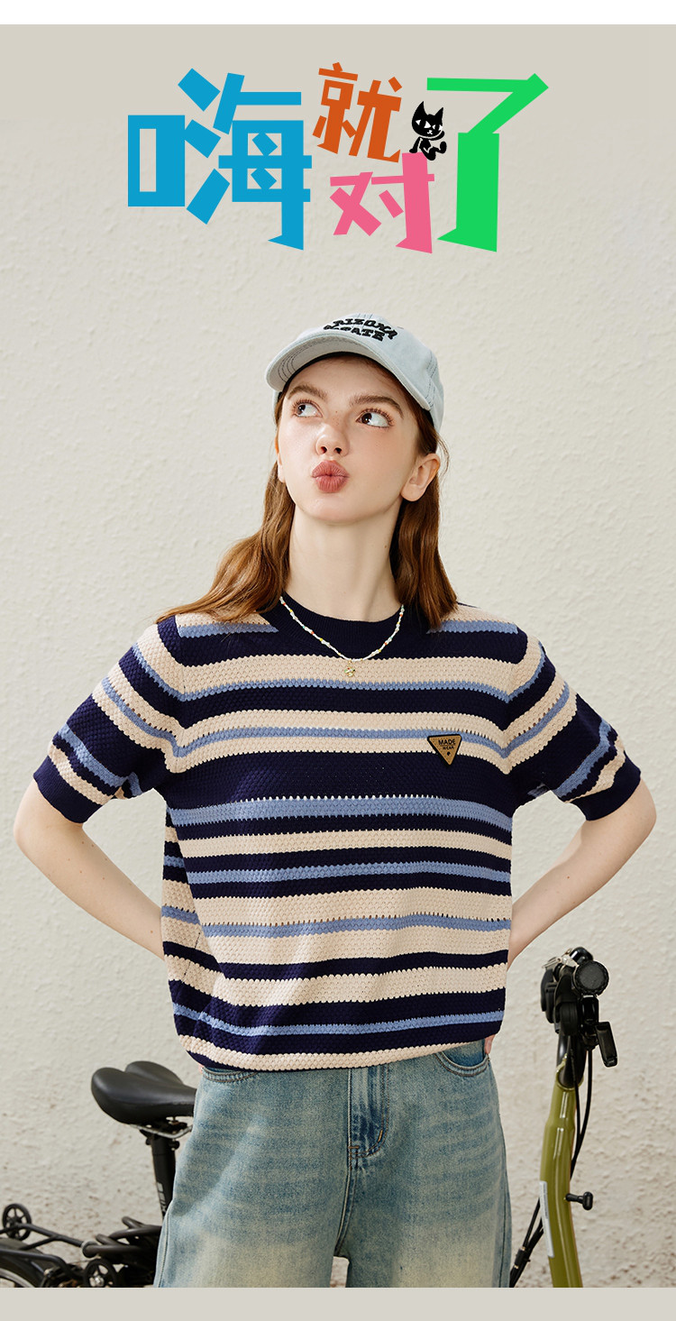 甜酷风渐变条纹针织衫短袖夏季修身短款女式针织衫 539677