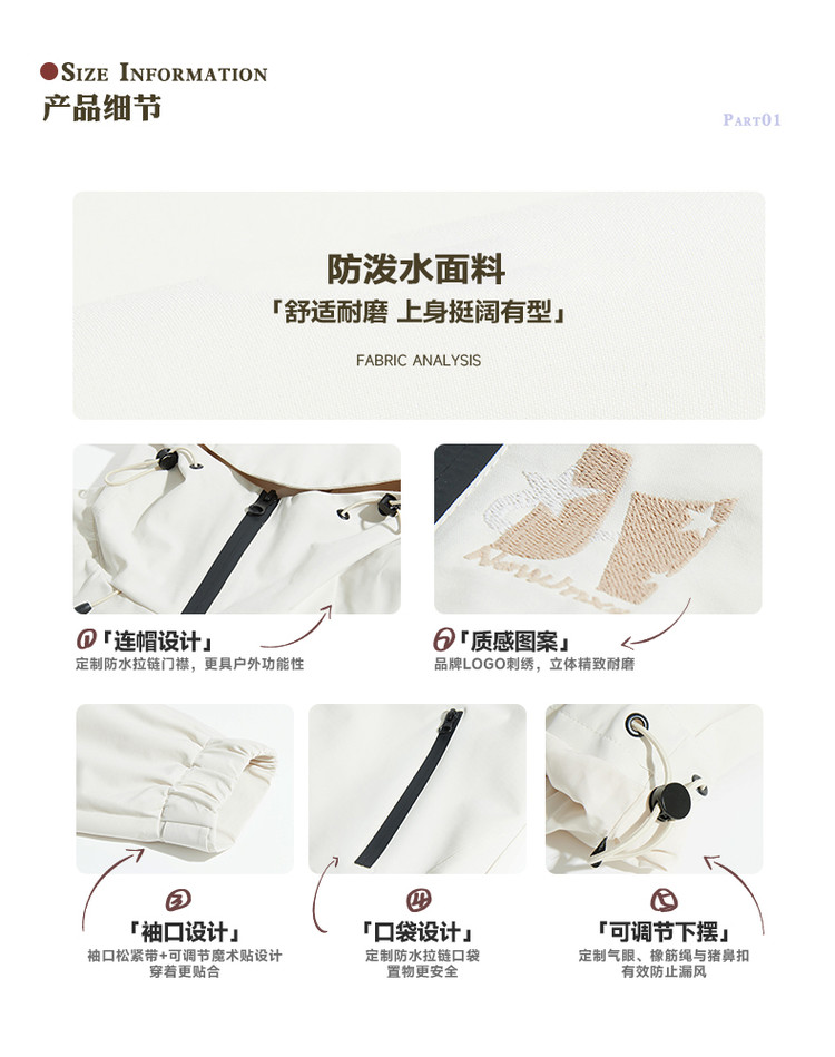 商品名称:江南先生美式复古防泼水机能登山服连帽夹克男女春季潮牌情侣外套 420433