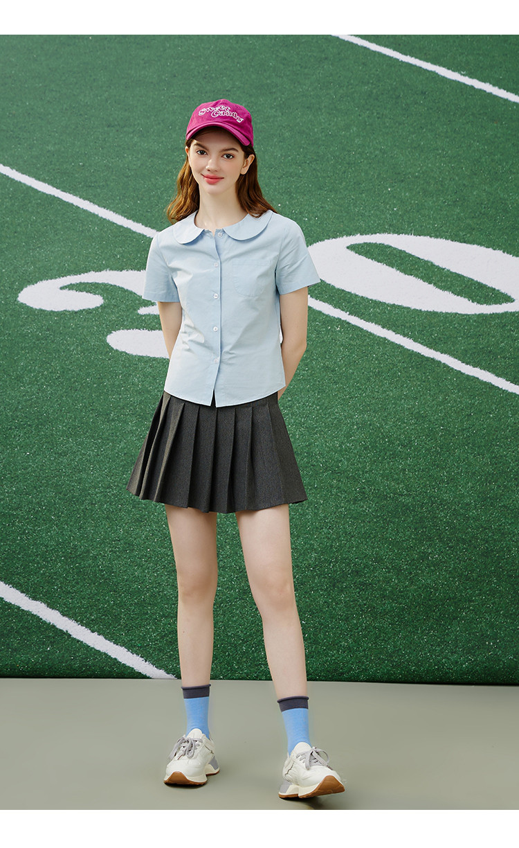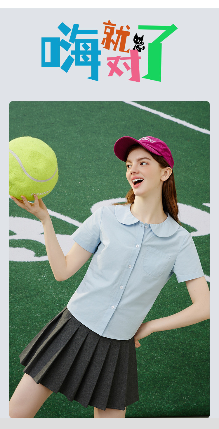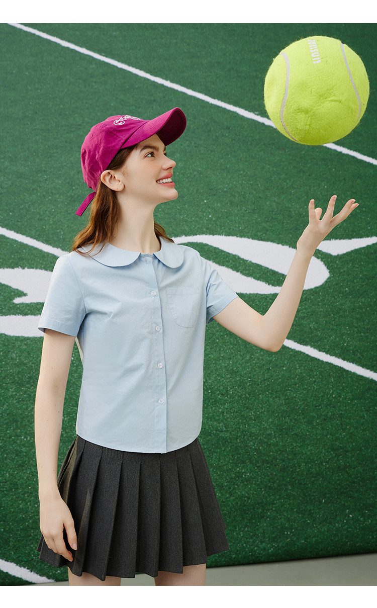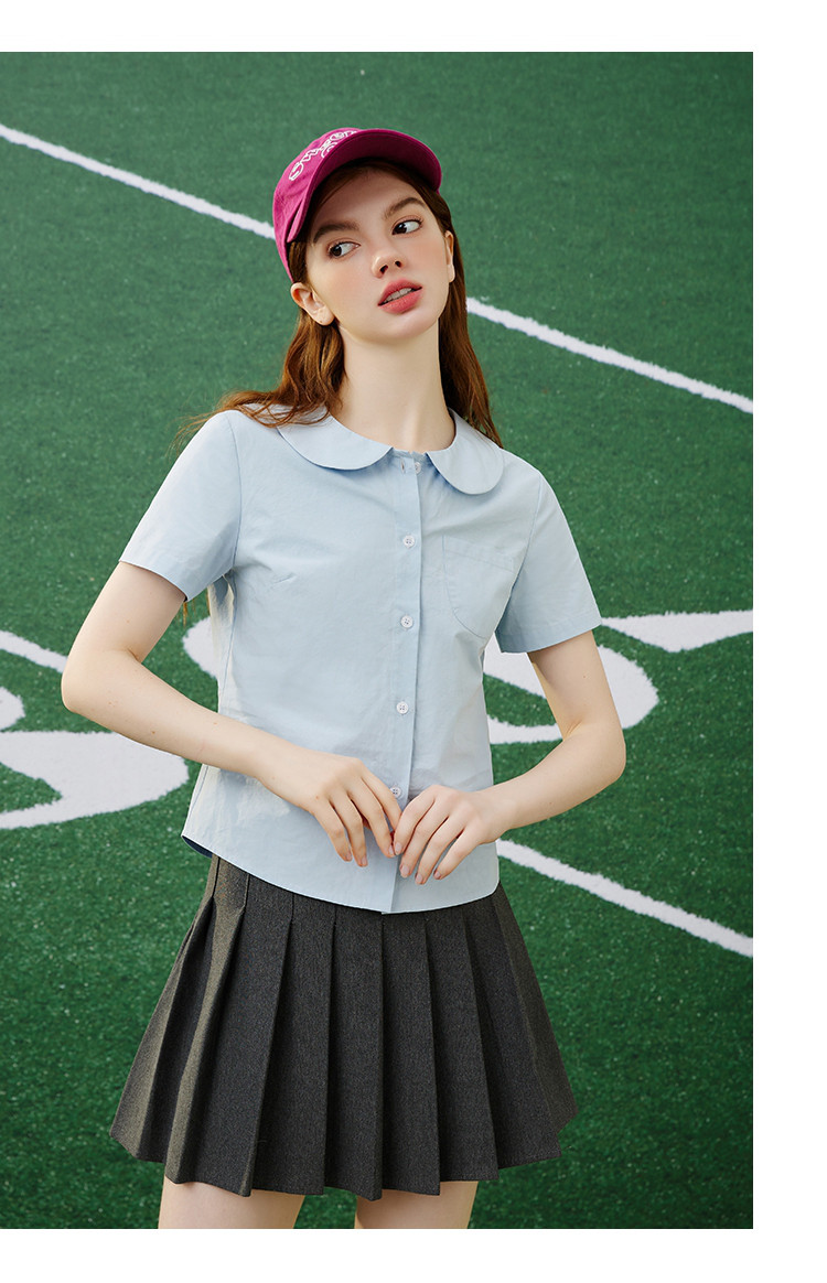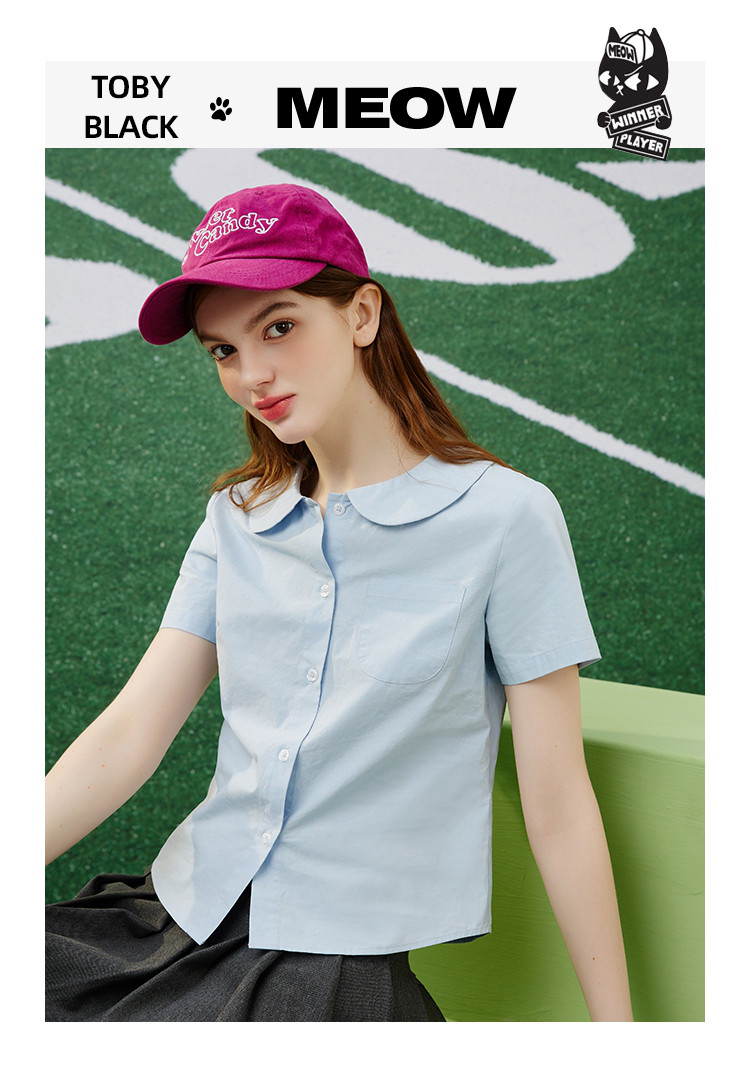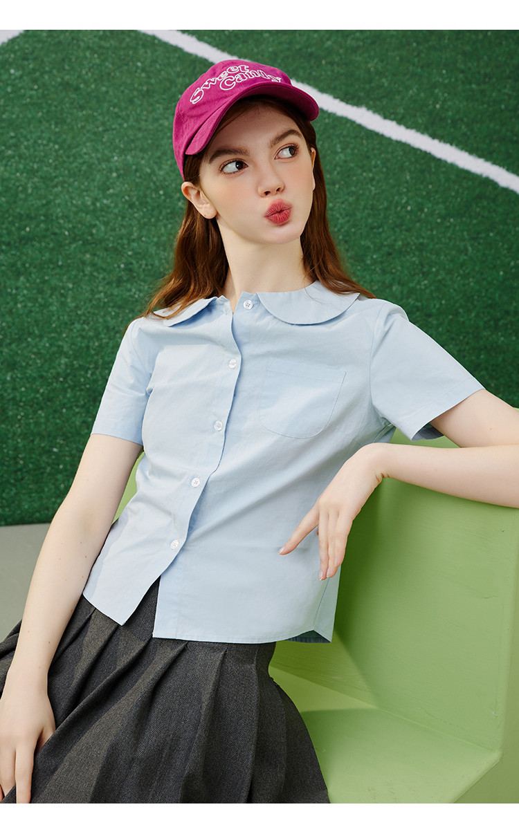 商品名称:【纯棉】复古多巴胺娃娃领小个子女式衬衫夏季千禧风 675869