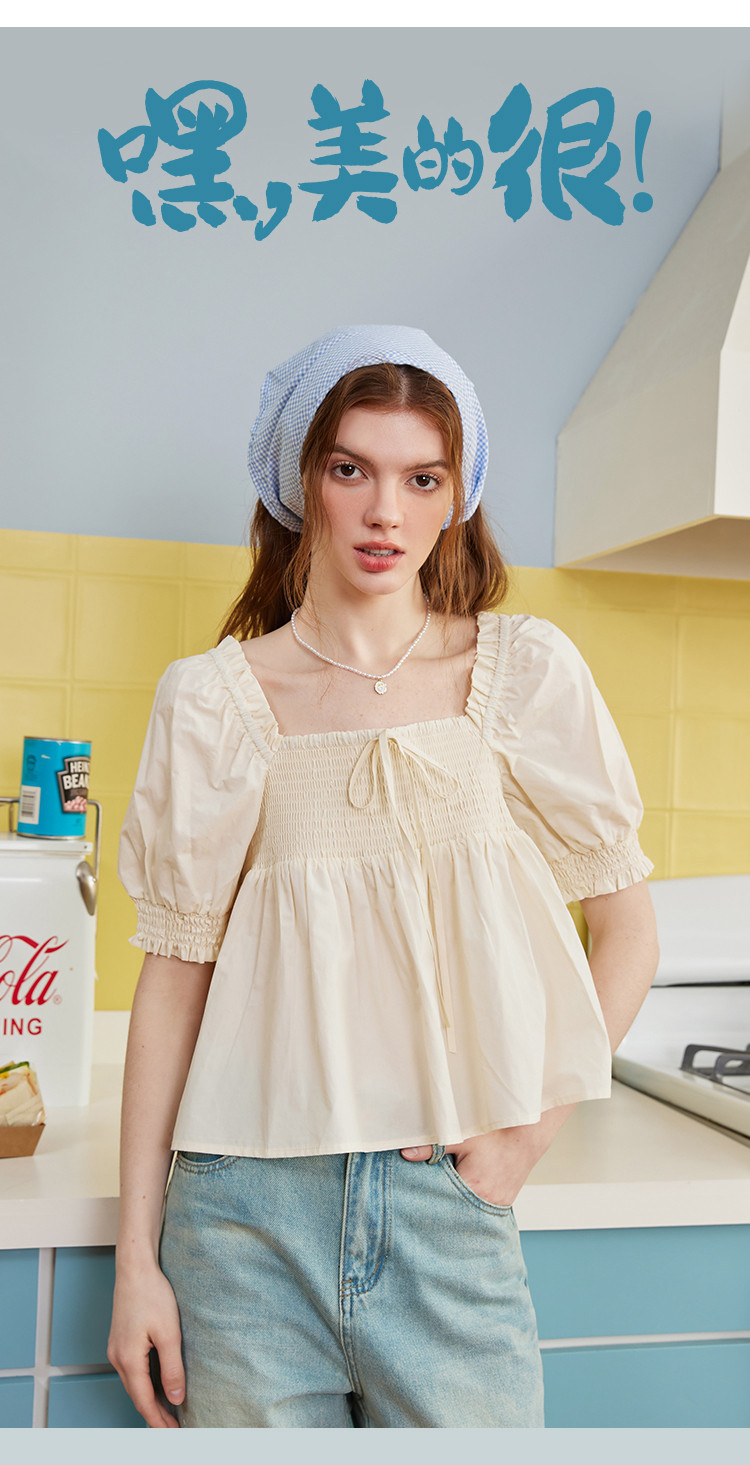 商品名称:【100%棉】一字肩两穿显瘦娃娃衫夏季女式衬衫 066205