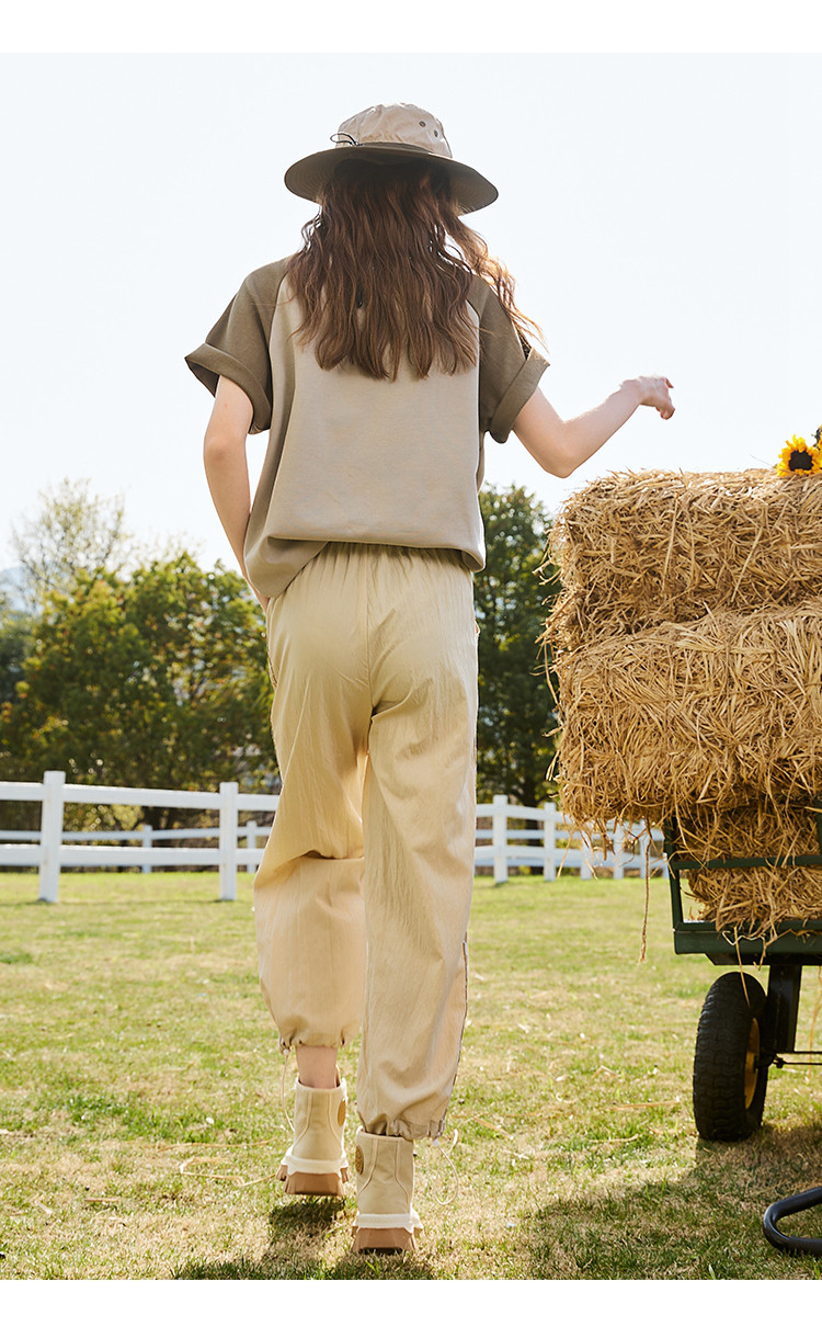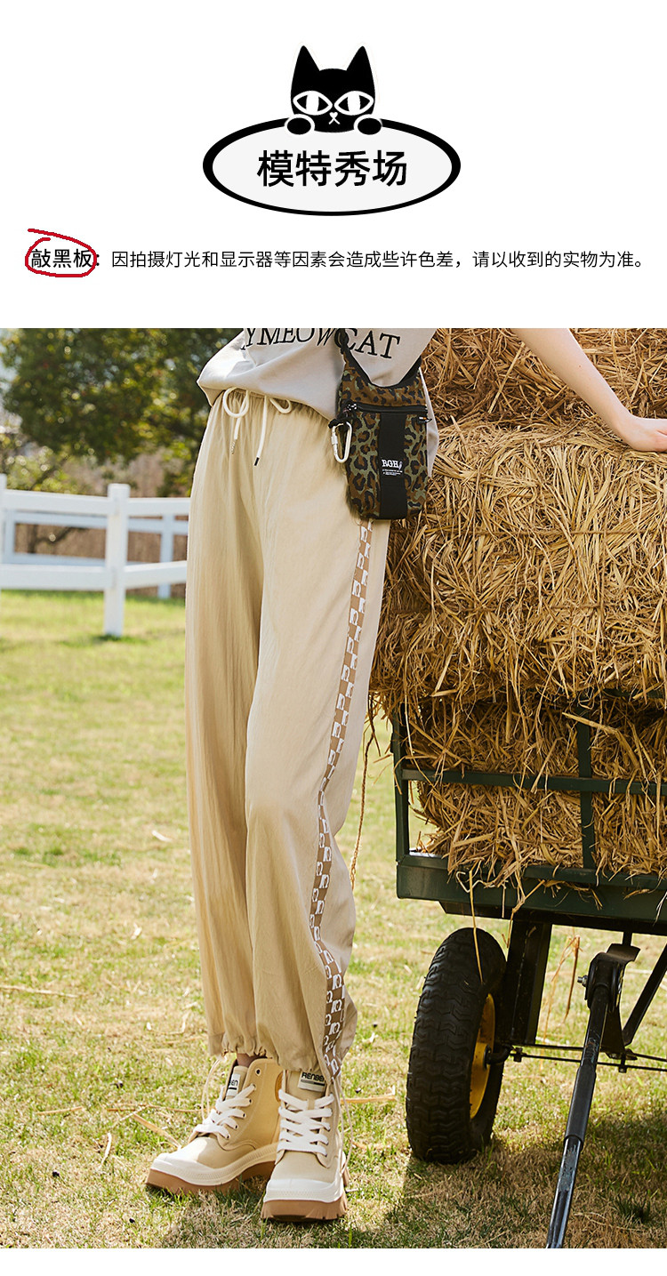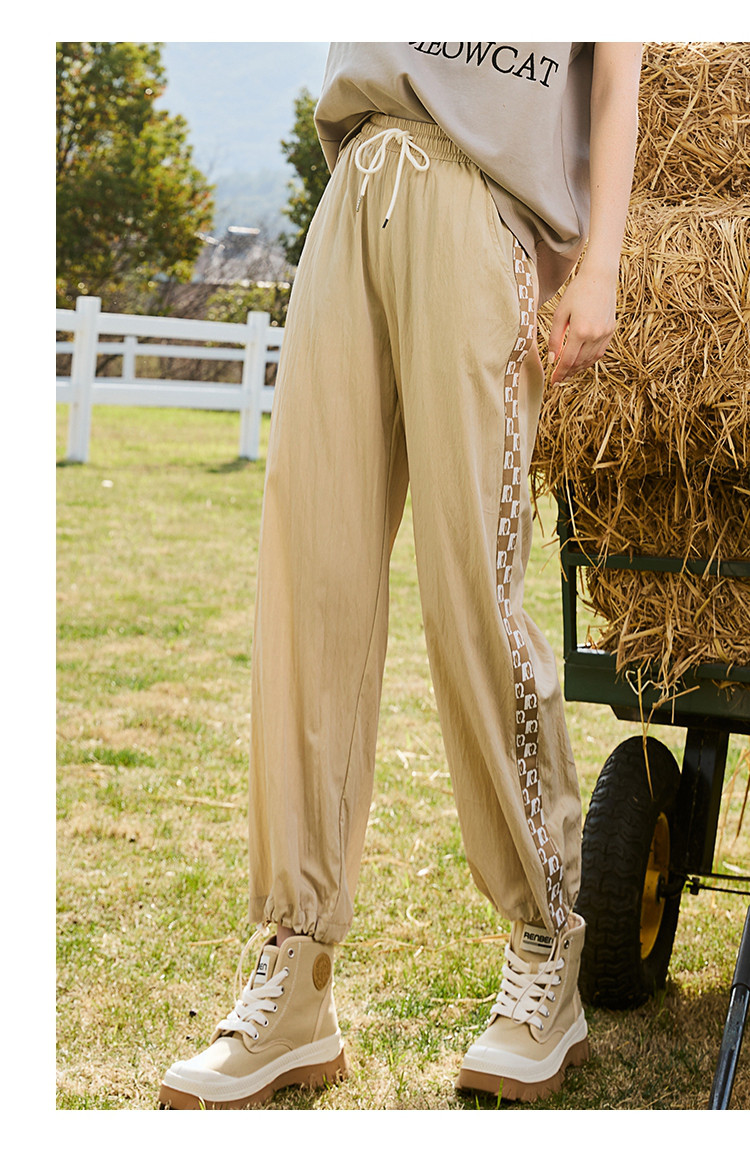 商品名称:侧边撞色拼接设计九分束脚裤夏季高腰街头风女式休闲裤 447325
