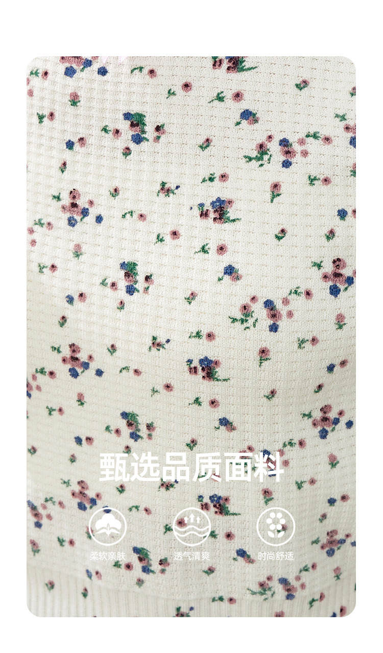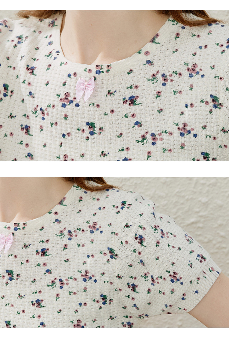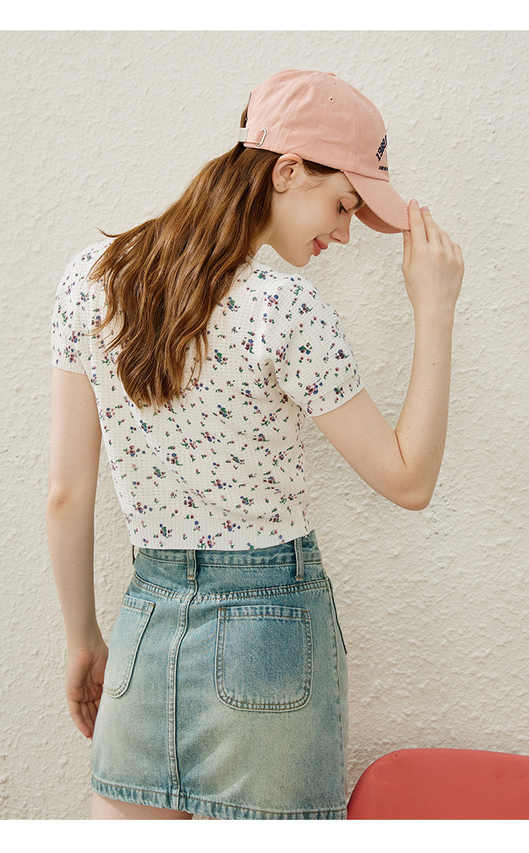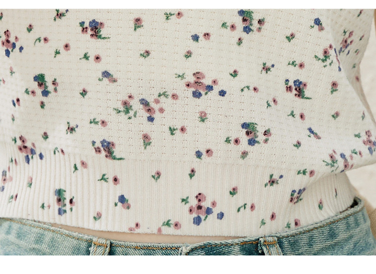 商品名称:满印小花小清新设计修身小衫夏季休闲圆领短款女式针织衫 181533