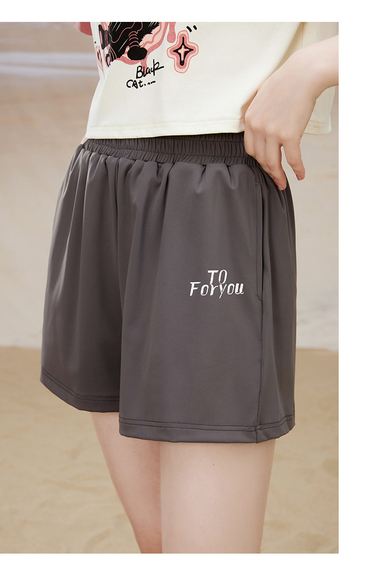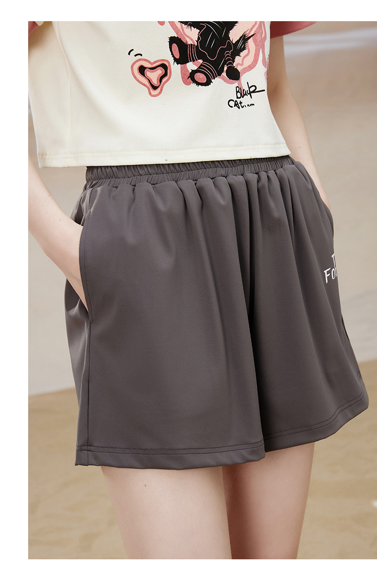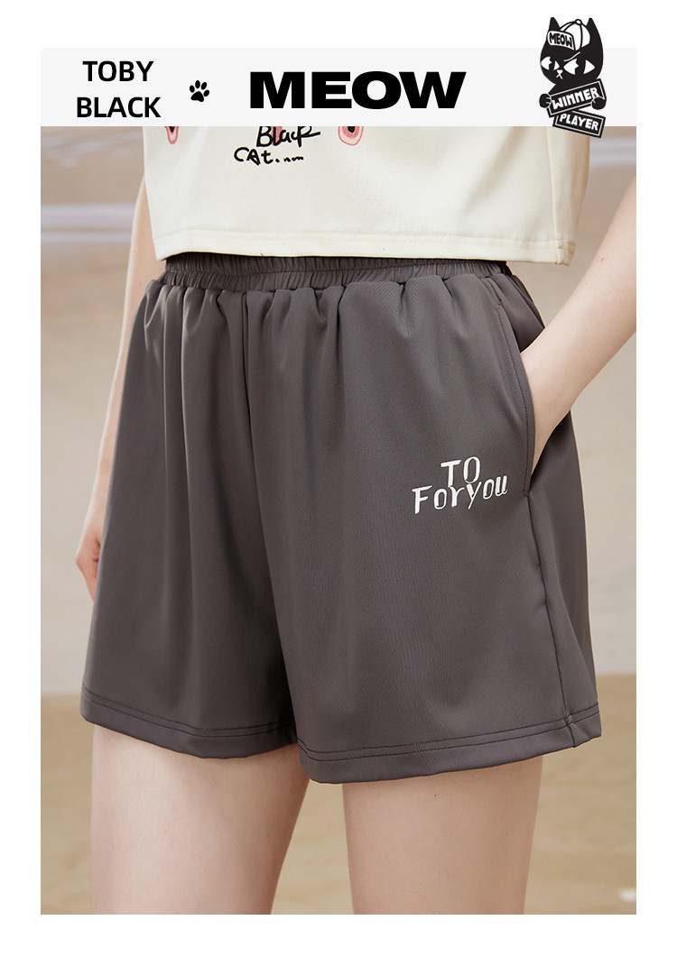 宽松时髦简约字母印花直筒短裤夏季居家百搭女式休闲裤 923165