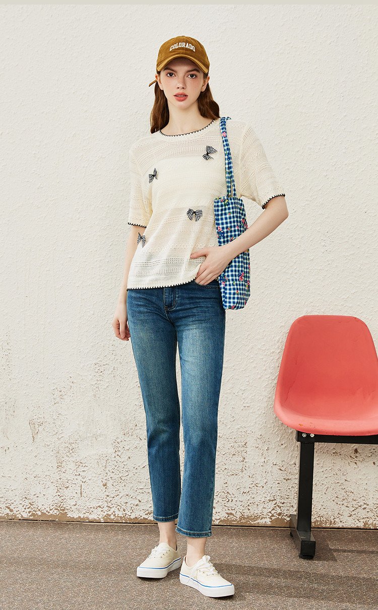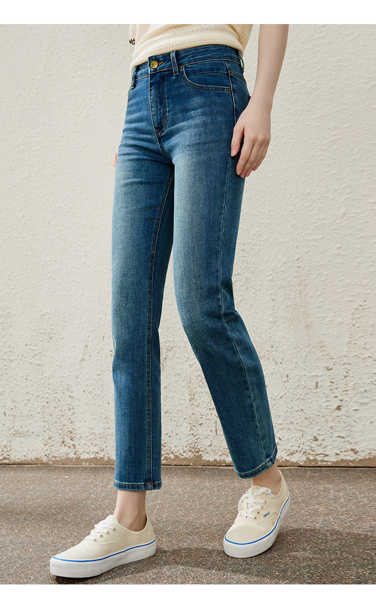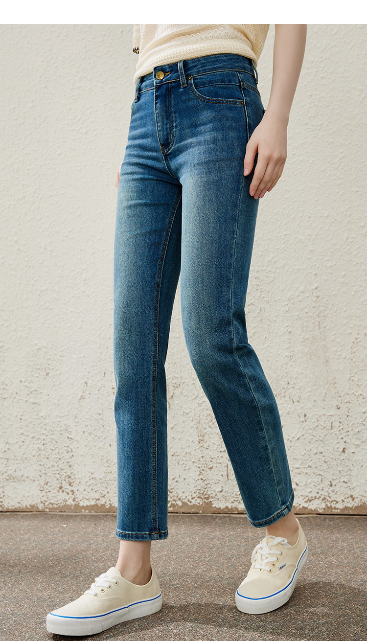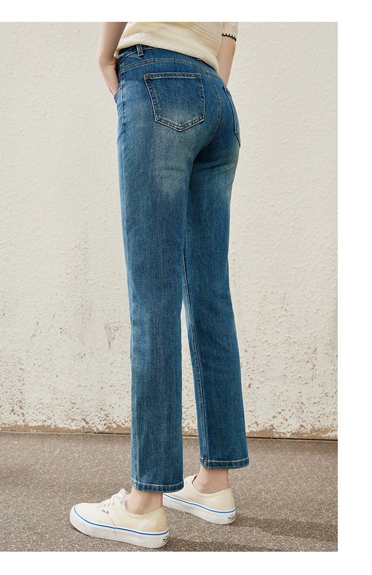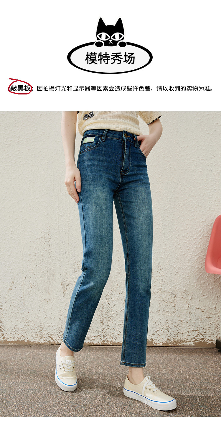 商品名称:高腰休闲百搭经典款烟管裤春季街头风简约设计女式牛仔裤 230493